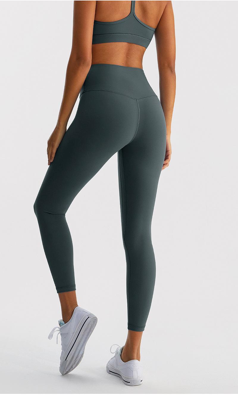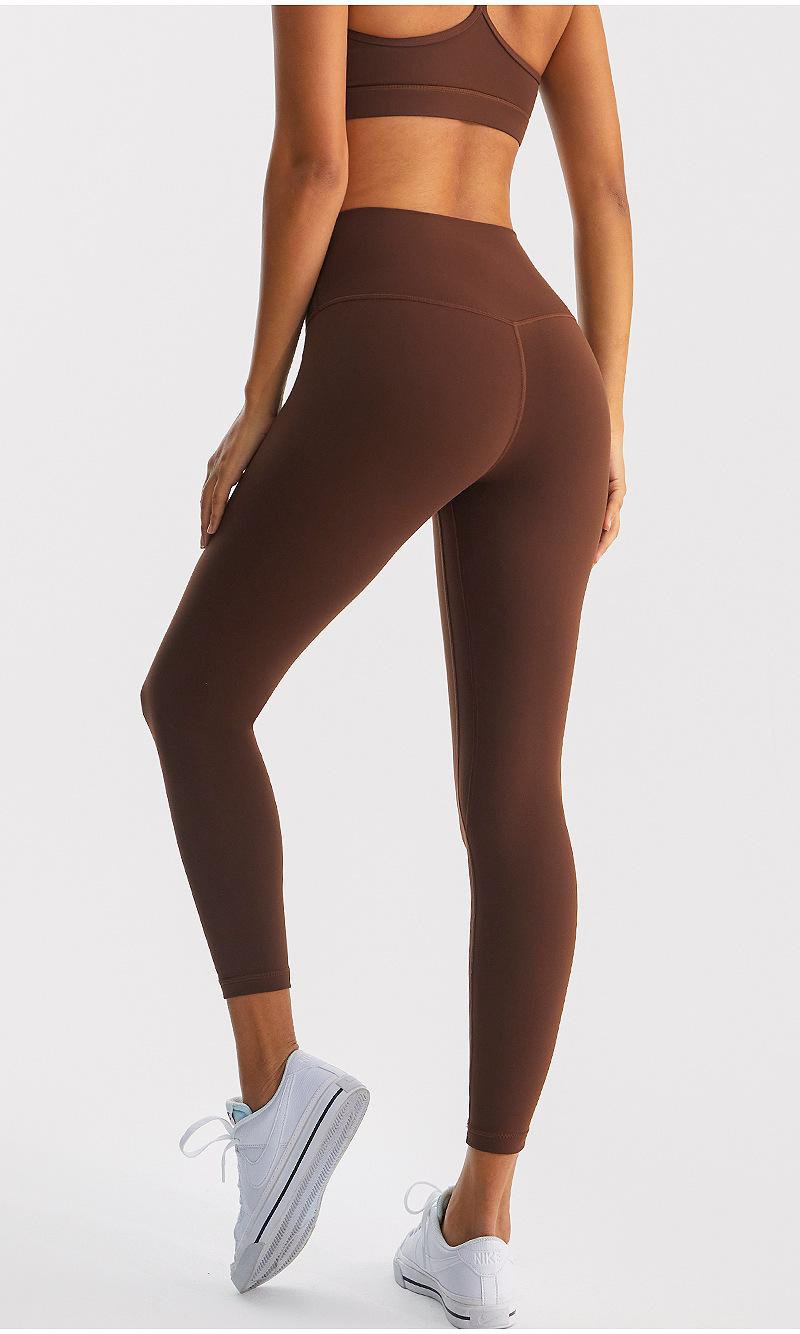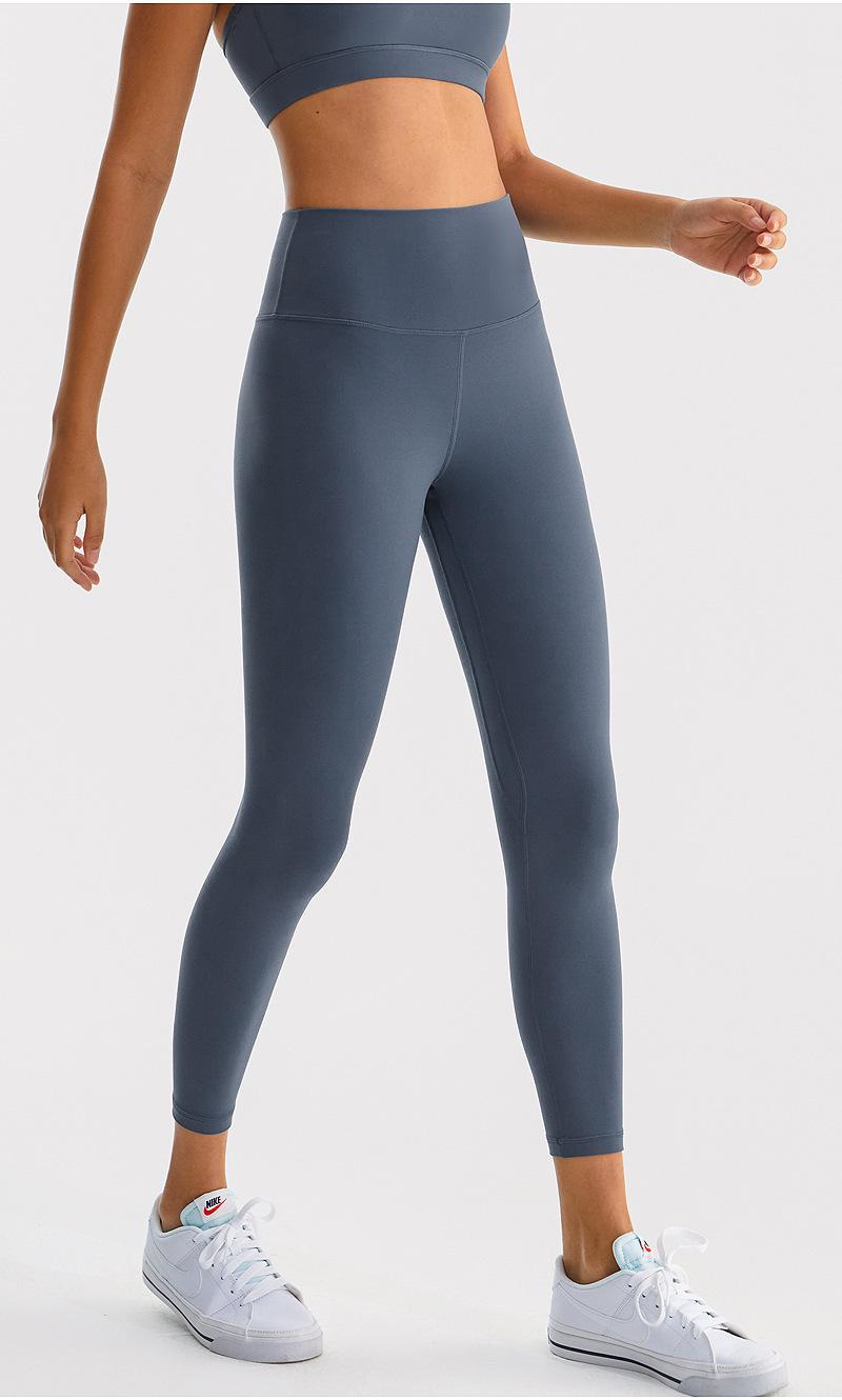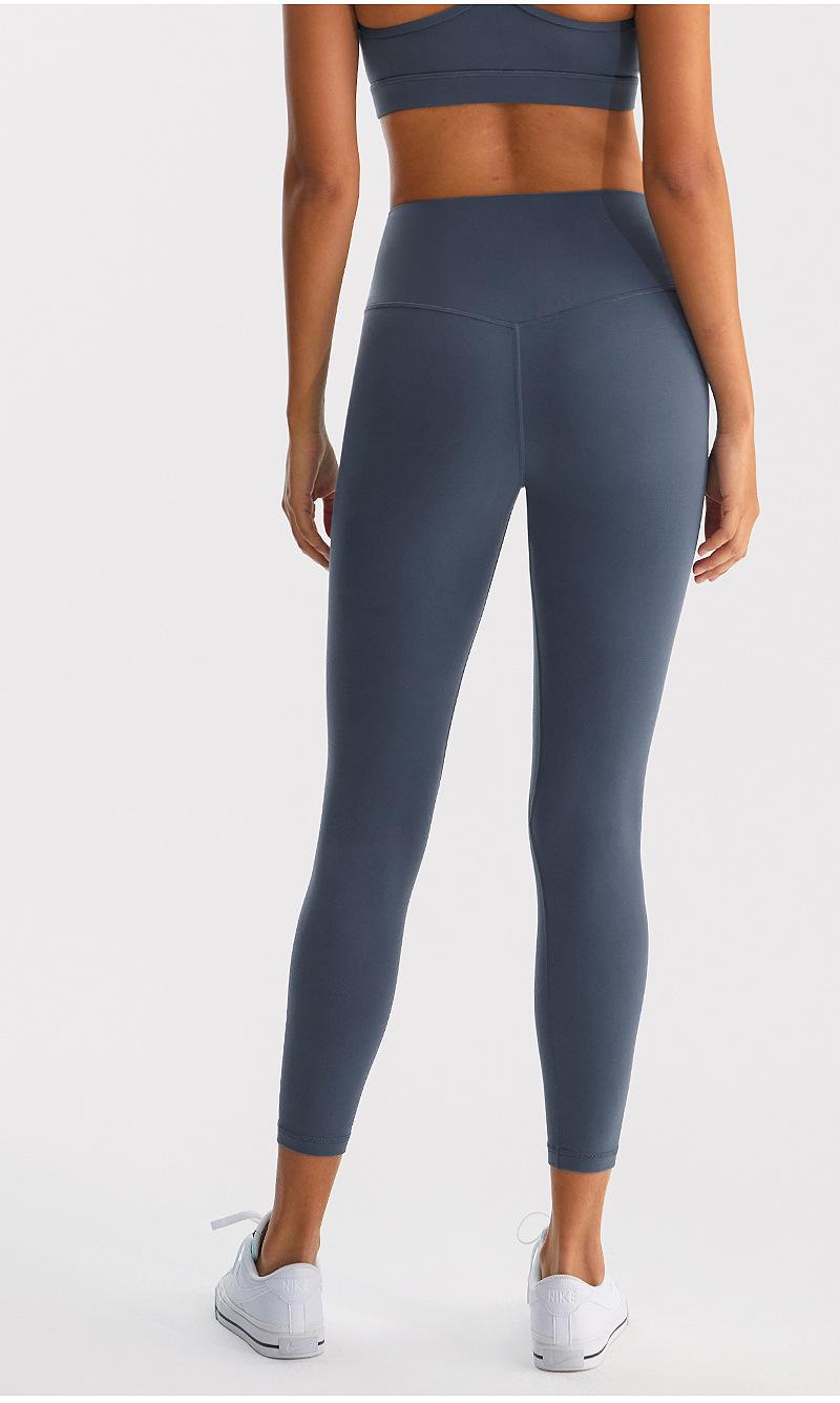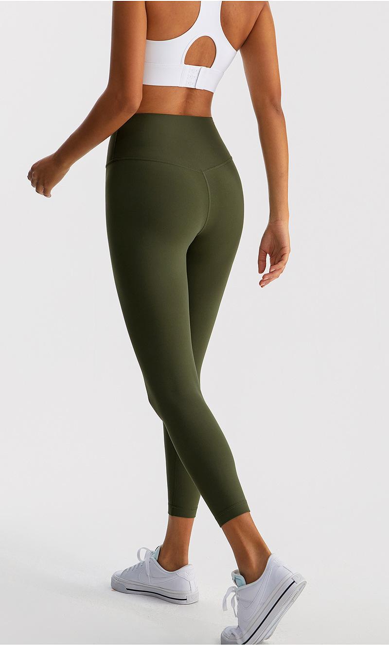 Calças de Yoga de Nove Pontos de Alta Elasticidade com Toque Escovado e Sensação Nua Cintura Alta com Controle da Barriga Modeladoras Levanta Bumbum Calças Esportivas para Fitness Corrida Jsk39H