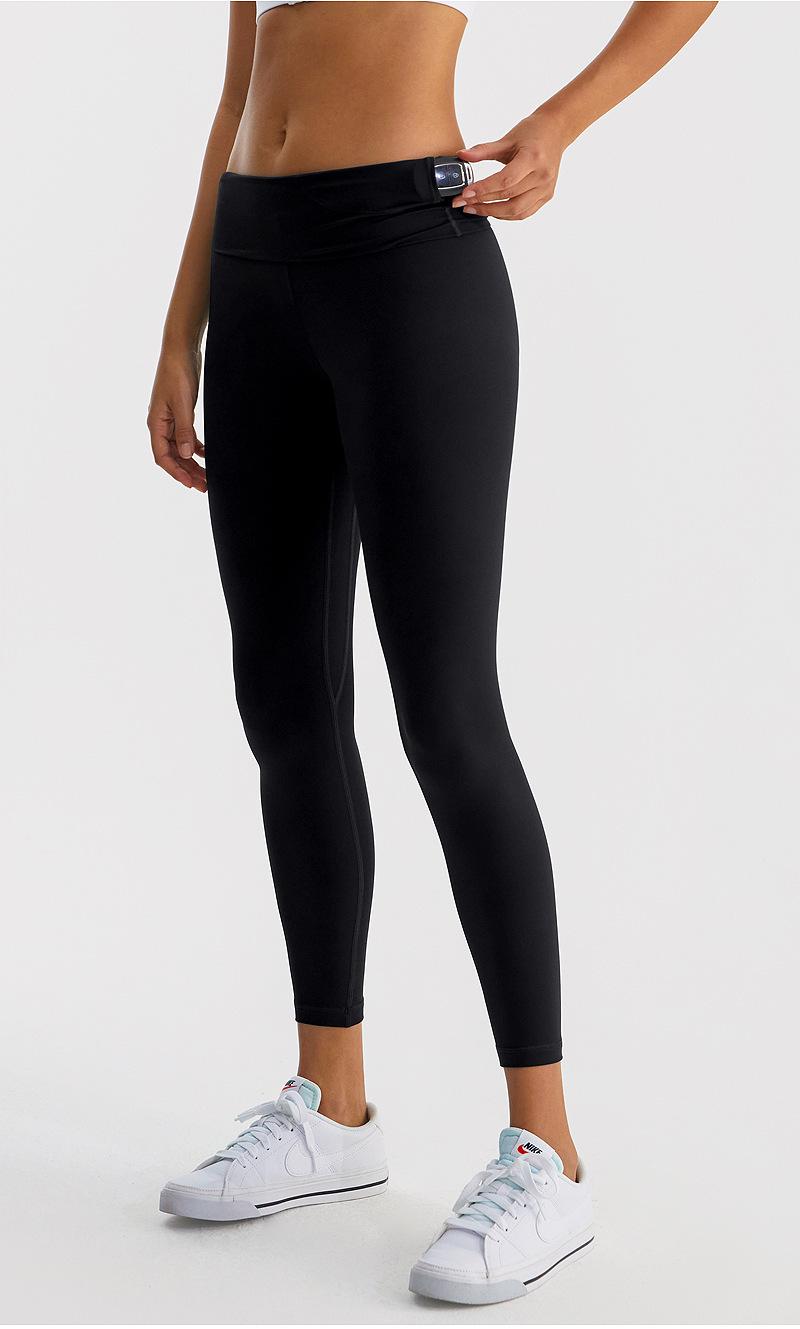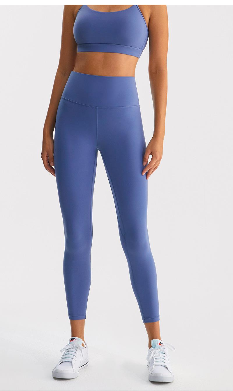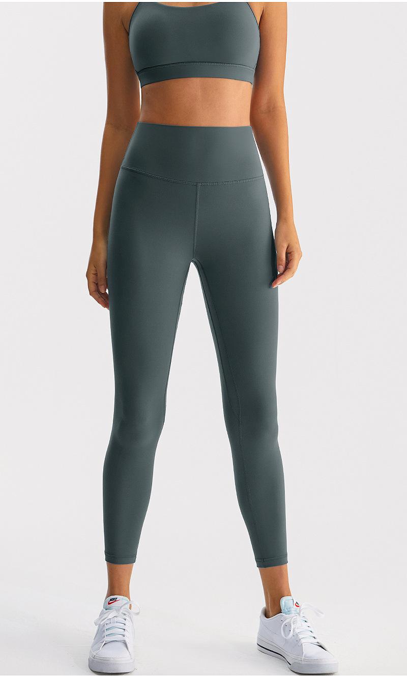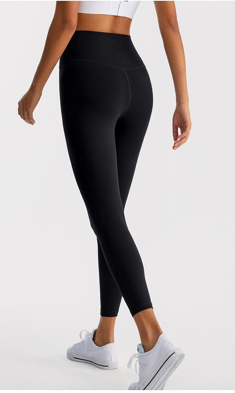 Calças de Yoga de Nove Pontos de Alta Elasticidade com Toque Escovado e Sensação Nua Cintura Alta com Controle da Barriga Modeladoras Levanta Bumbum Calças Esportivas para Fitness Corrida Jsk39H