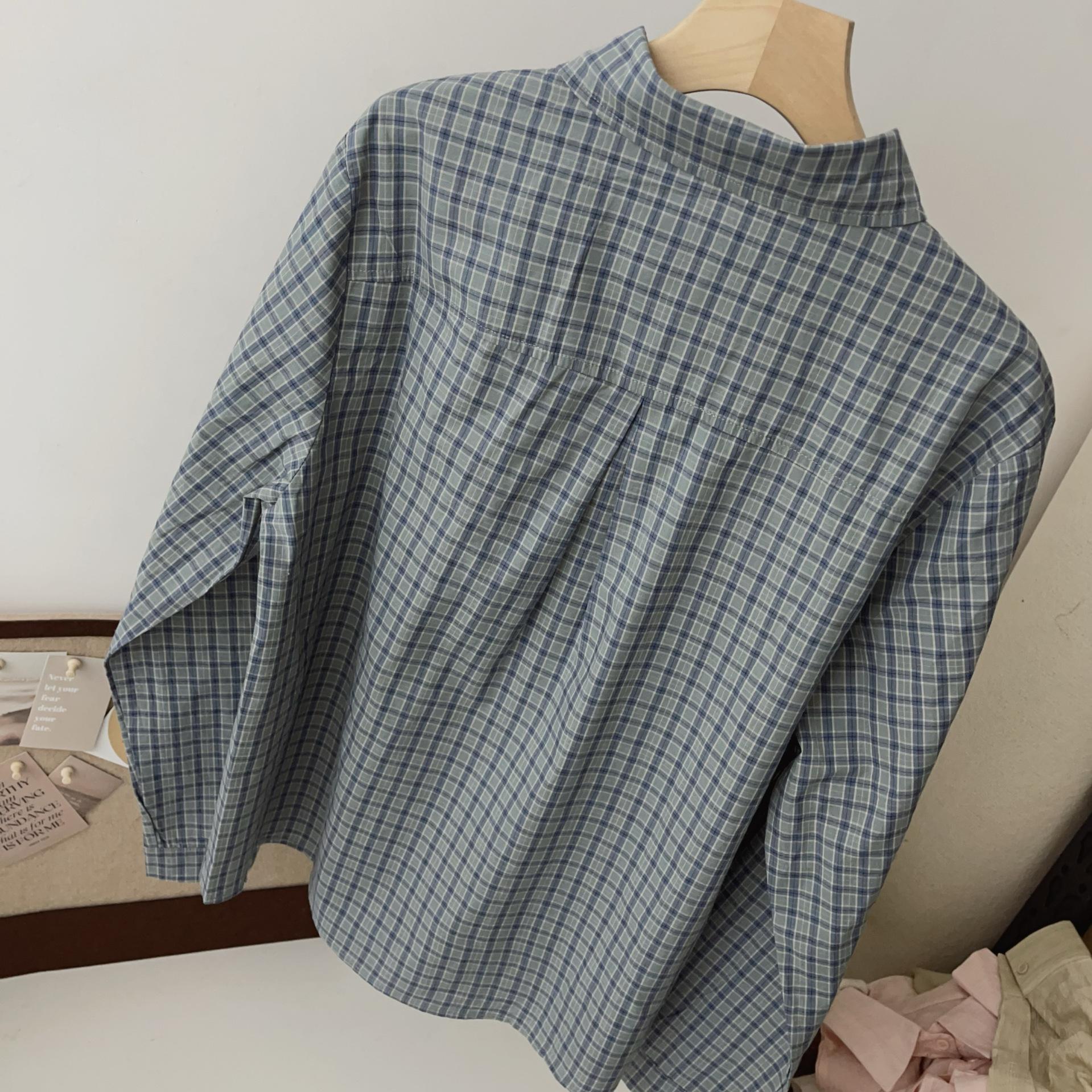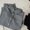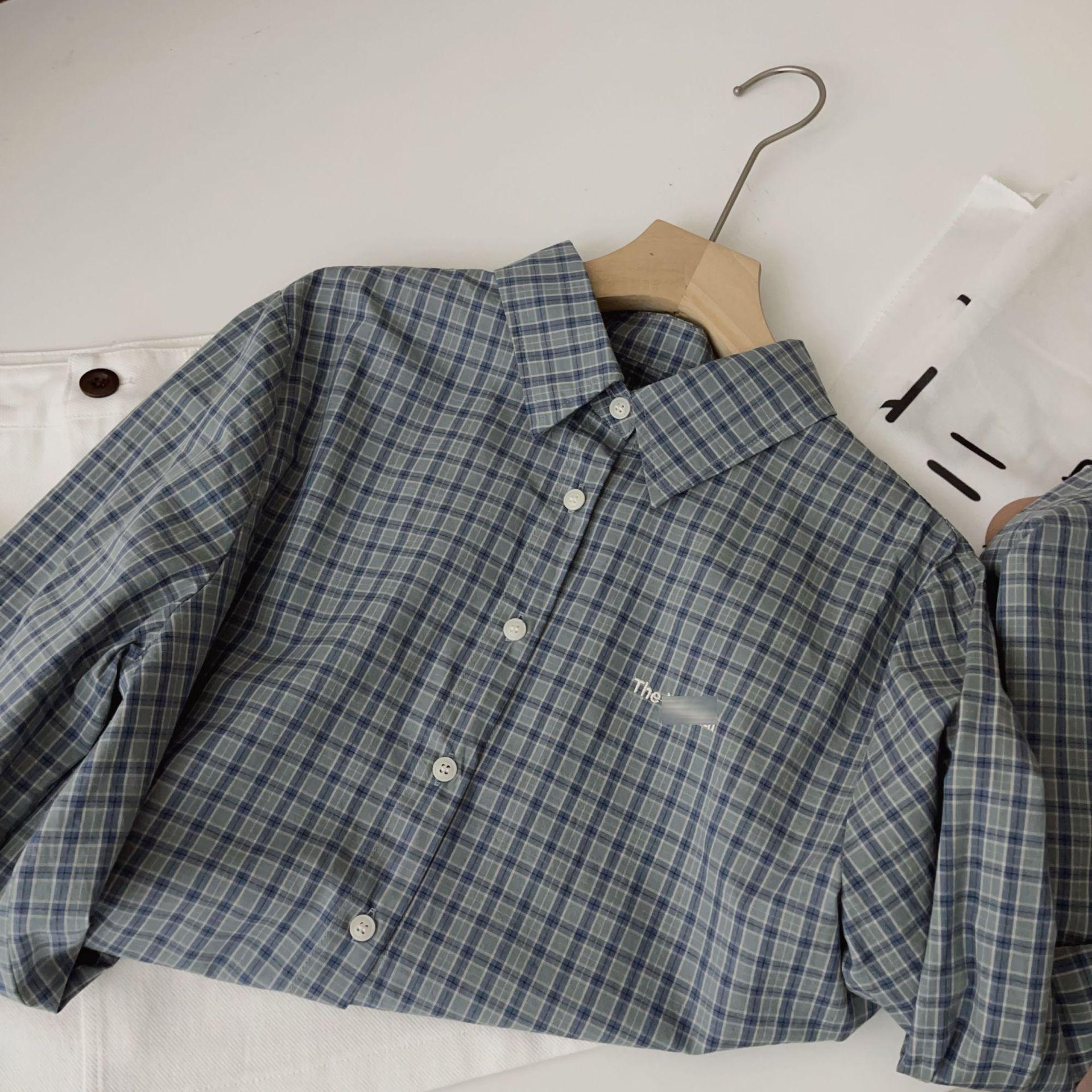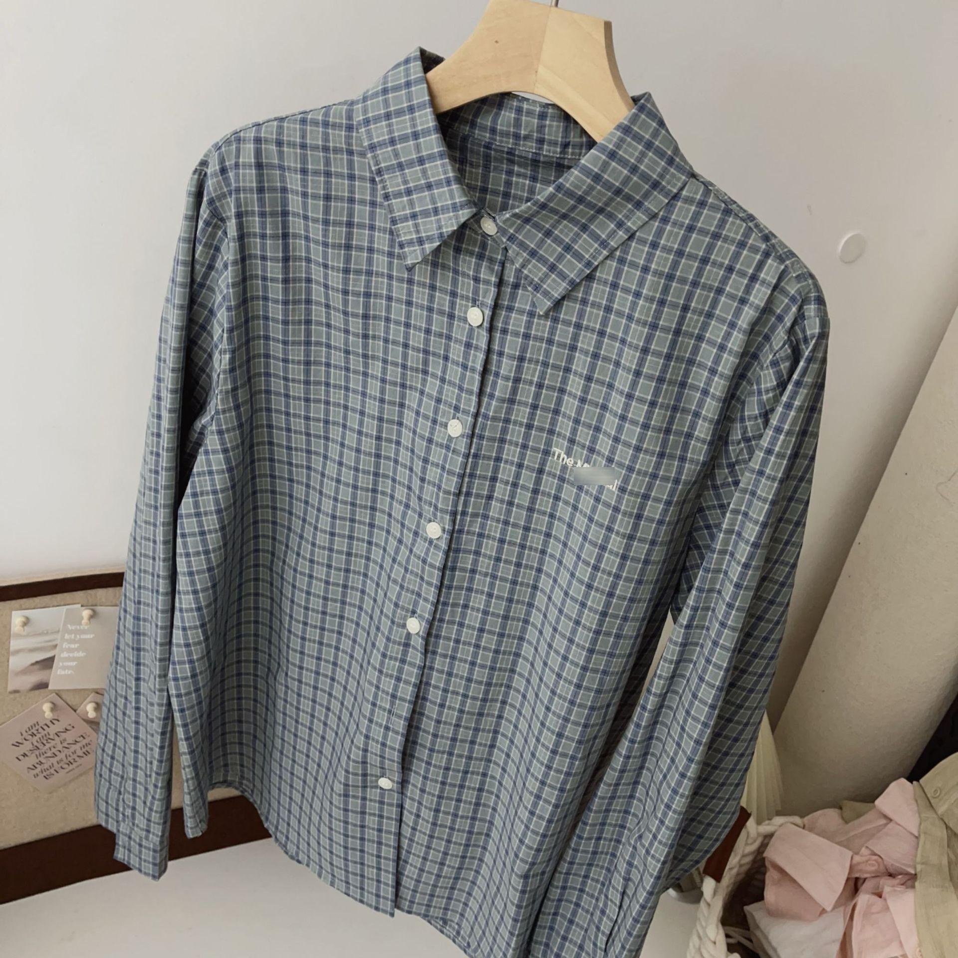 2025 Início da Primavera Novo Polo Europeu Bordado com Letras Camisa Xadrez Elegante para o Dia a Dia Feminina Primavera e Outono Transfronteiriça