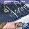 Costura de Agulha Dupla Aprimorada: Esta máquina de costura pode ser configurada para o modo de costura com agulha dupla ou costura com agulha única. Você pode alternar entre os dois modos de costura conforme necessário. A costura de linha dupla permite usar as linhas superior e inferior simultaneamente, tornando a linha de costura mais forte, mais esteticamente agradável, mais rápida e mais eficiente. 12 pontos e costura reversa : Existem 12 modos de costura incluindo costura reta, costura Z, costura decorativa, costura de casa de botão e costura invisível.. Equipado com função de costura reversa, selecionar o modo de costura reversa acionará a costura reversa. Os números dos botões correspondem a diferentes padrões de costura, e o corpo é equipado com iluminação LED, tornando-o fácil de operar e muito adequado para iniciantes e todas as faixas etárias. [Movimento automático e design cantilever]: Esta máquina de costura foi aprimorada para ter uma função de bobinagem automática mais suave, de modo que a máquina não enganche a agulha ou quebre a linha devido a nós durante o processo de costura.. O design cantilever desta máquina facilita a costura de punhos, golas, pernas de calças e roupas infantis. Alta qualidade : Cada uma de nossas máquinas de costura é feita de carcaça de material PP espessado de alta qualidade, descartando plástico fino inferior.. As conexões pré-costura e as ferramentas de costura do corpo da máquina são feitas de material de aço inoxidável duro especialmente fabricado, que é requintado, de alta qualidade e pode ser usado por muito tempo sem ser facilmente danificado. Máquina de Costura Portátil: Com uma estrutura compacta, não ocupa muito espaço e pode ser colocada em qualquer lugar. É muito leve, fácil de transportar e pode atender às suas necessidades diárias e básicas de costura a qualquer hora e em qualquer lugar.