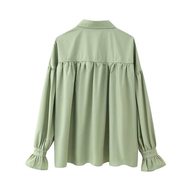 Camisa Larga Nova Comércio Exterior Moda Verão Casual Manga Longa Lanterna Combina Com Tudo Estilo Europeu e Americano Manga Longa Feminina