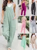 Roupa feminina europeia e americana ebay Amazon verão nova moda bolso grande cor sólida solto alça calças jardineira mulheres