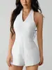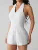 Macacão Elegante Europeu e Americano Novo Sexy Moda Slim Cor Sólida Decote em V Sem Mangas Decotado Halter para Mulheres
