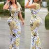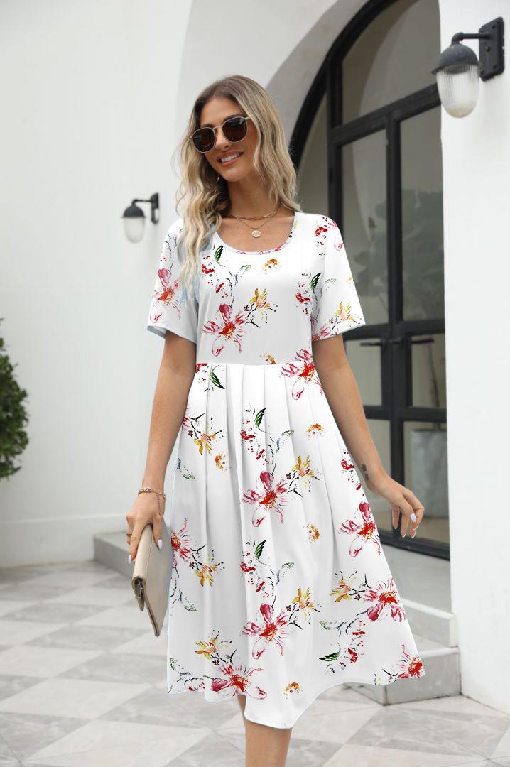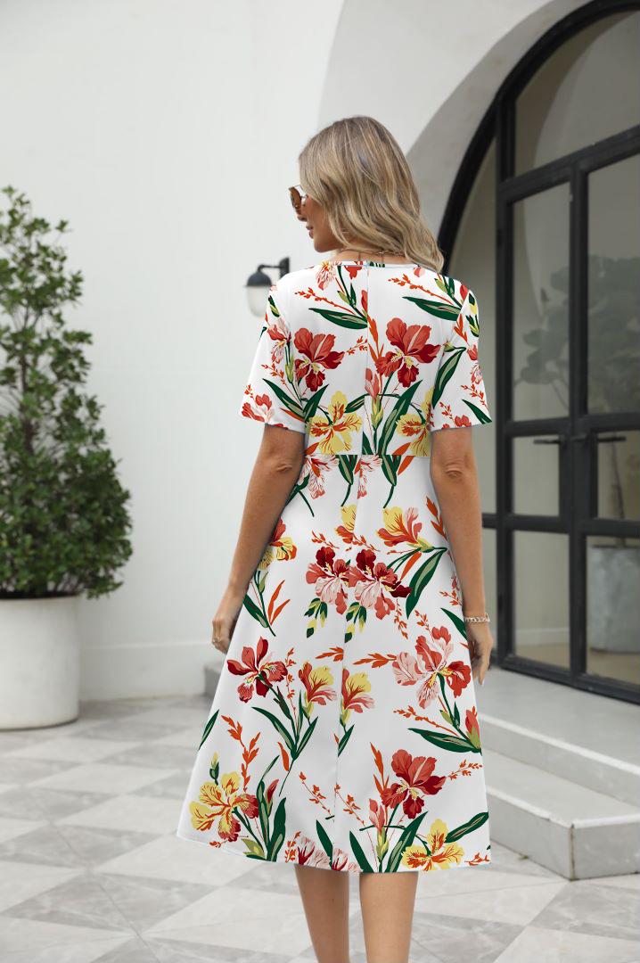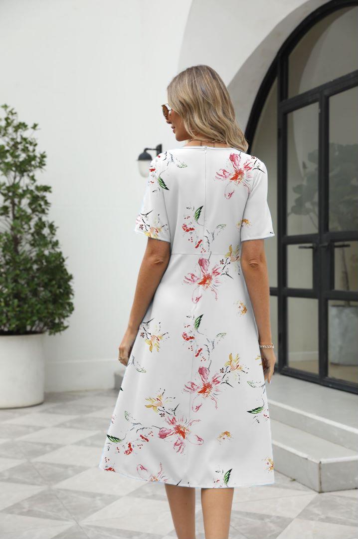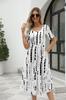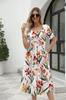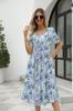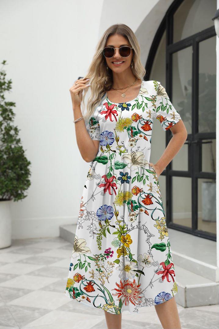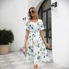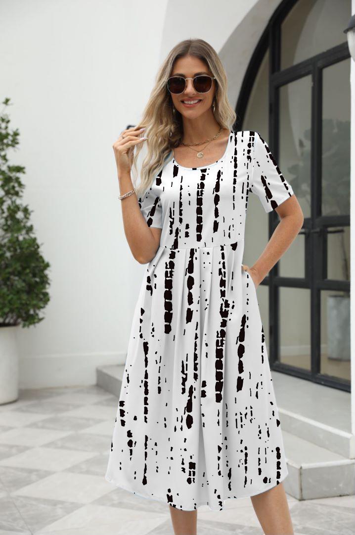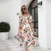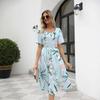 2024 Europeu e Americano Verão Novo Moda Feminina Elegante Estampado Gola Redonda Manga Curta Vestido com Zíper