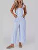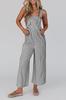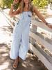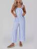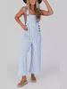 Macacão Feminino 2024 Verão Casual Perna Larga Sem Mangas Botões Listrado Macacão Roupas da Moda