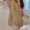 Camisa de chiffon feminina primavera e verão 2023 novo design senso nicho camisa tamanho grande solto all-match manga comprida top