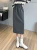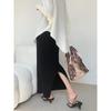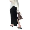 Outono e Inverno 2025 Versátil Look Emagrecedor Saia A-Line Fenda Midi Justa ao Quadril Saia de Tricô Preta de Cintura Alta para Mulheres