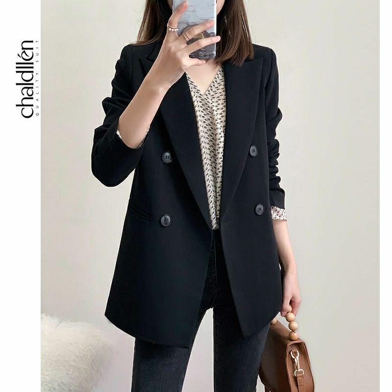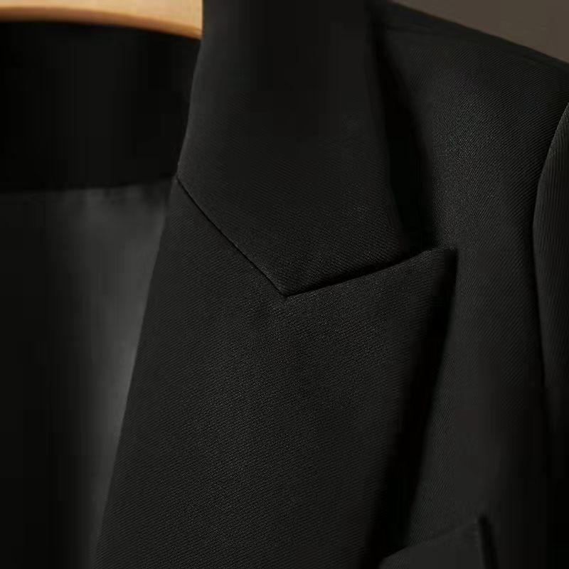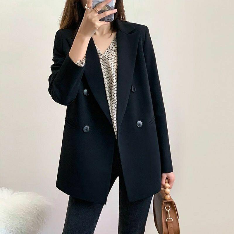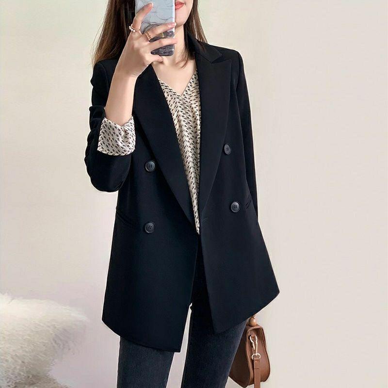 Casaco de outono feminino preto pequeno terno estilo coreano popular na internet estilo britânico início do outono terno jaqueta feminina estilo Hong Kong