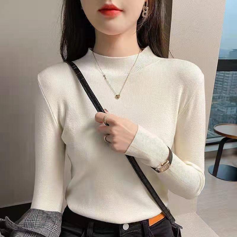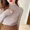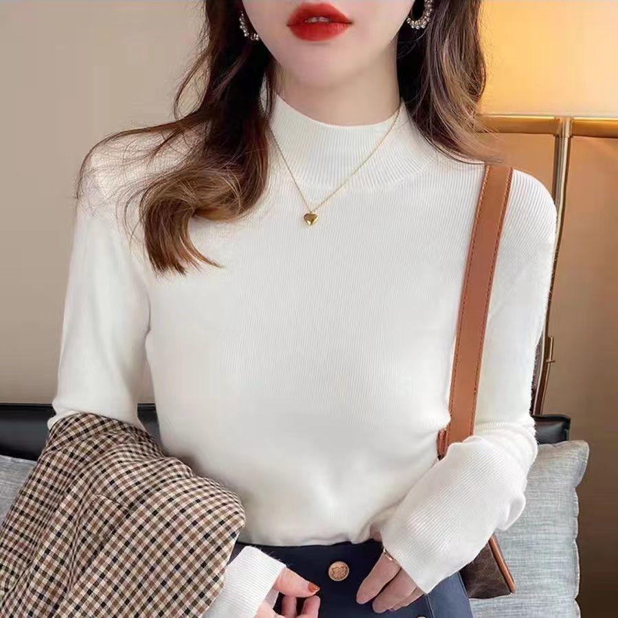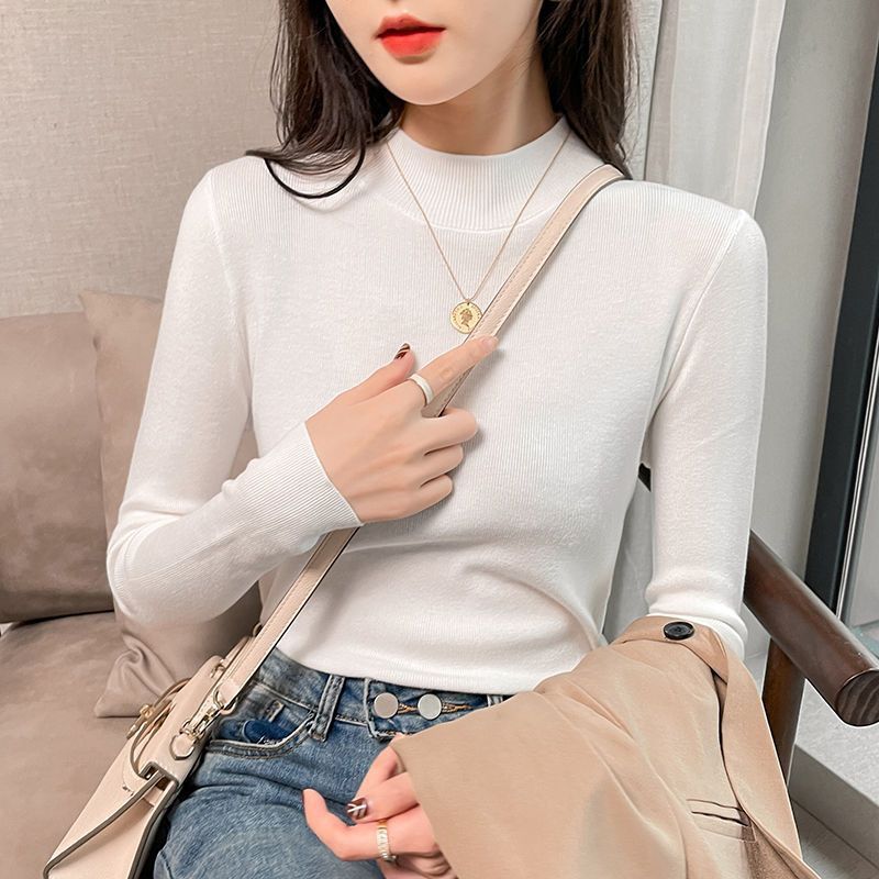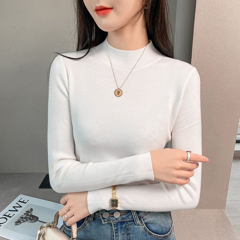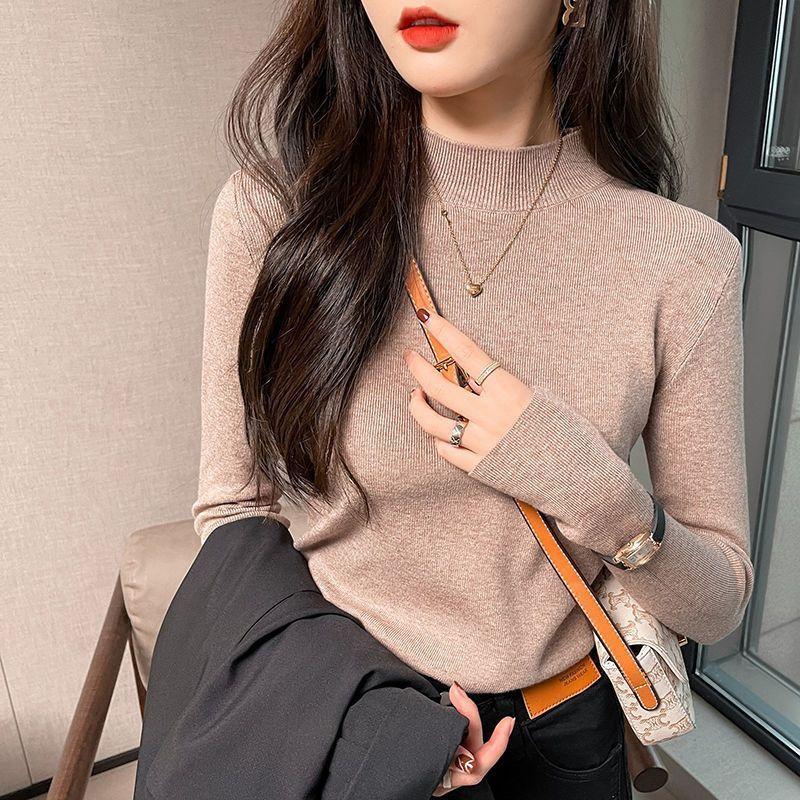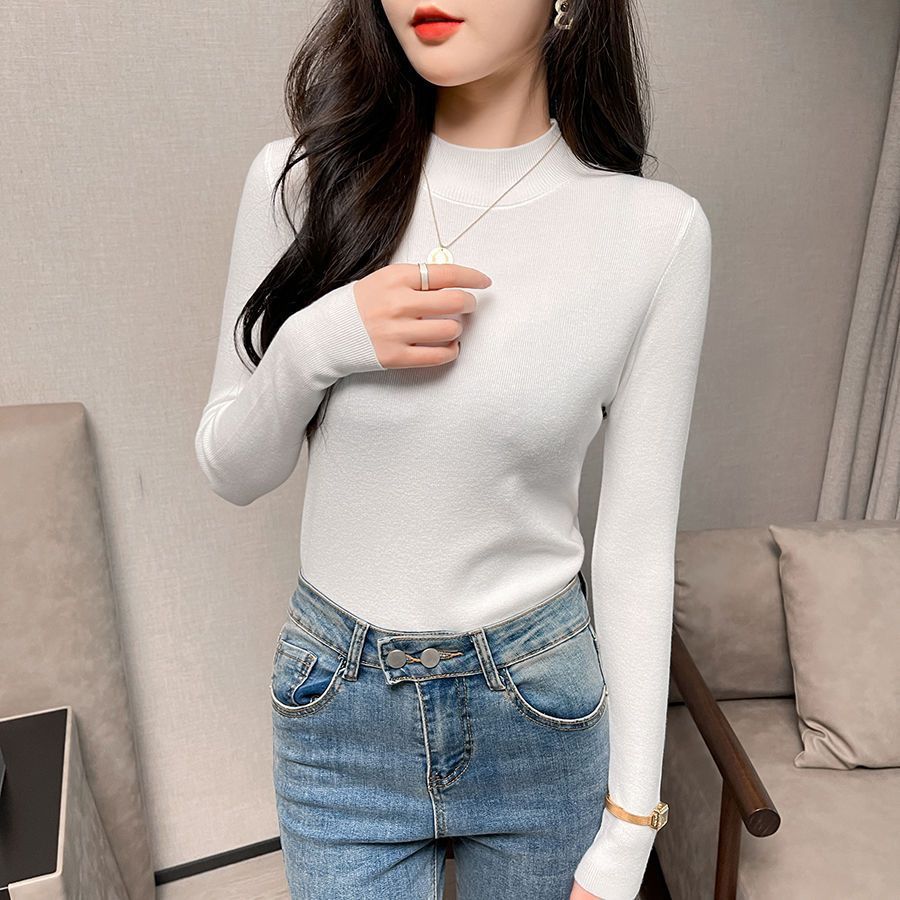 Suéter feminino de gola meia alta Novo suéter de outono e inverno Slim-fit Emagrecimento Interno Top de manga comprida All-match Camisa base de estilo ocidental