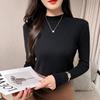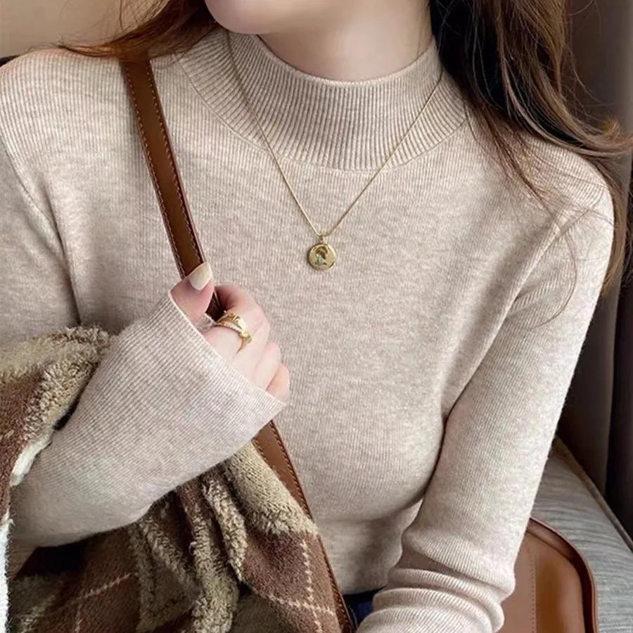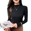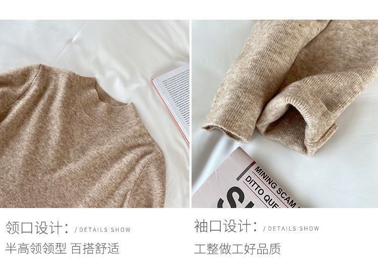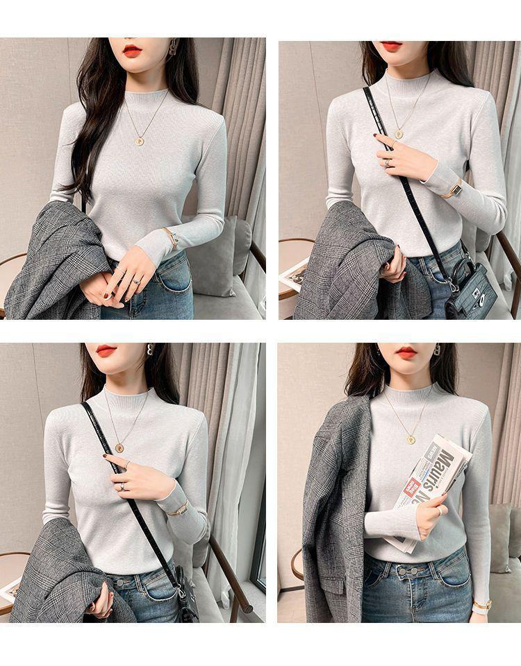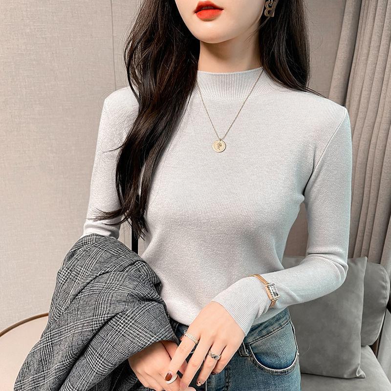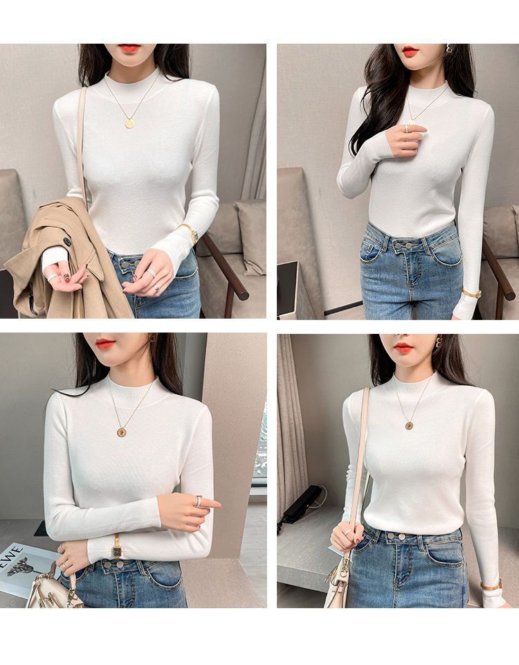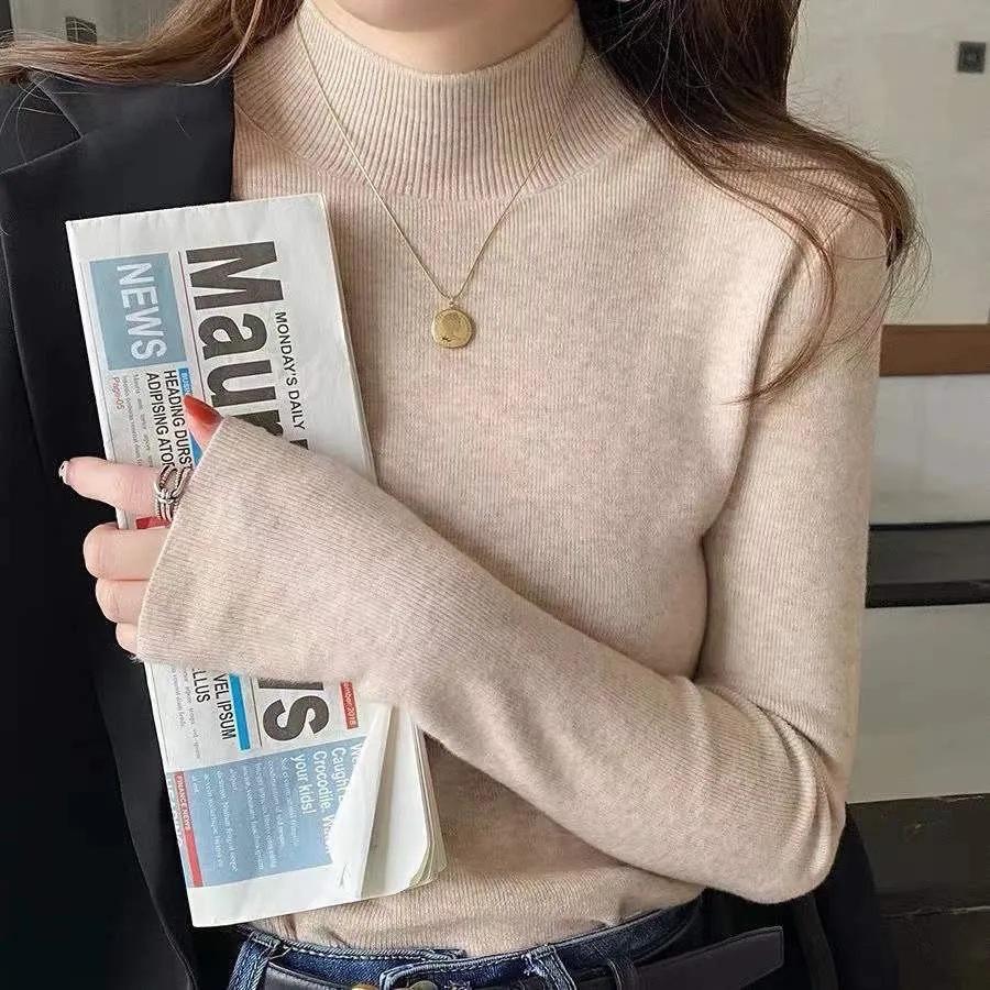 Suéter feminino de gola meia alta Novo suéter de outono e inverno Slim-fit Emagrecimento Interno Top de manga comprida All-match Camisa base de estilo ocidental