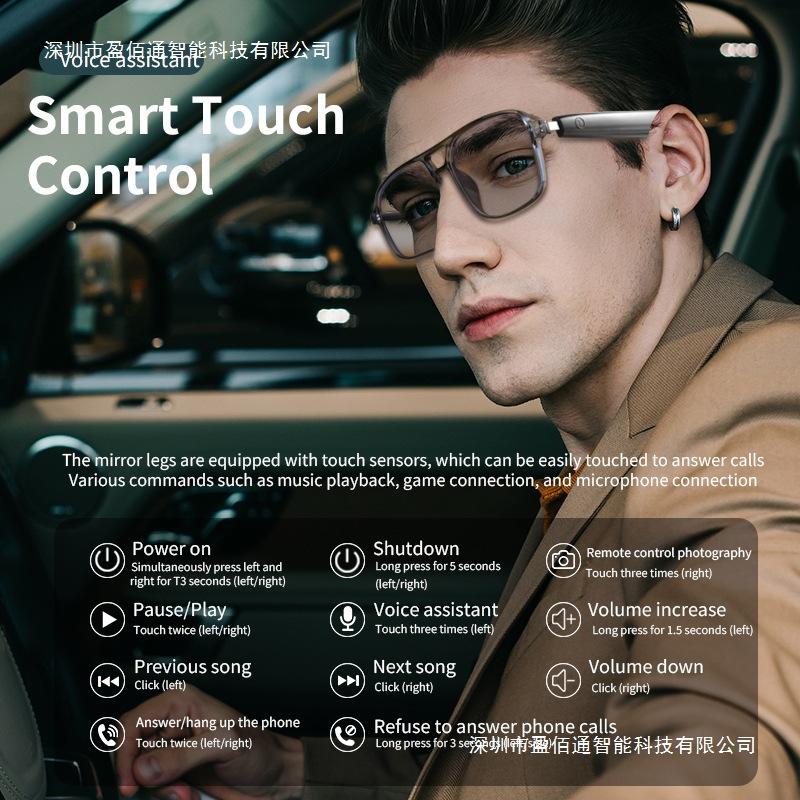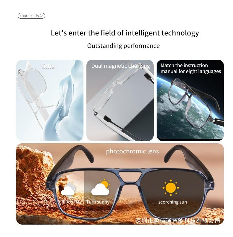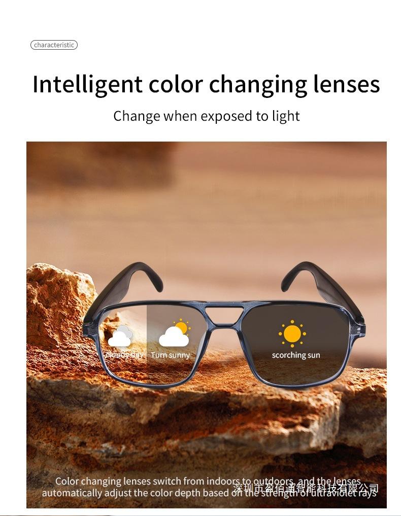 Óculos inteligentes de comércio exterior Óculos de áudio Bluetooth Óculos de mudança de cor de feixe duplo Óculos anti-luz azul Ouvir músicas Chamada Óculos de sol anti-ultravioleta