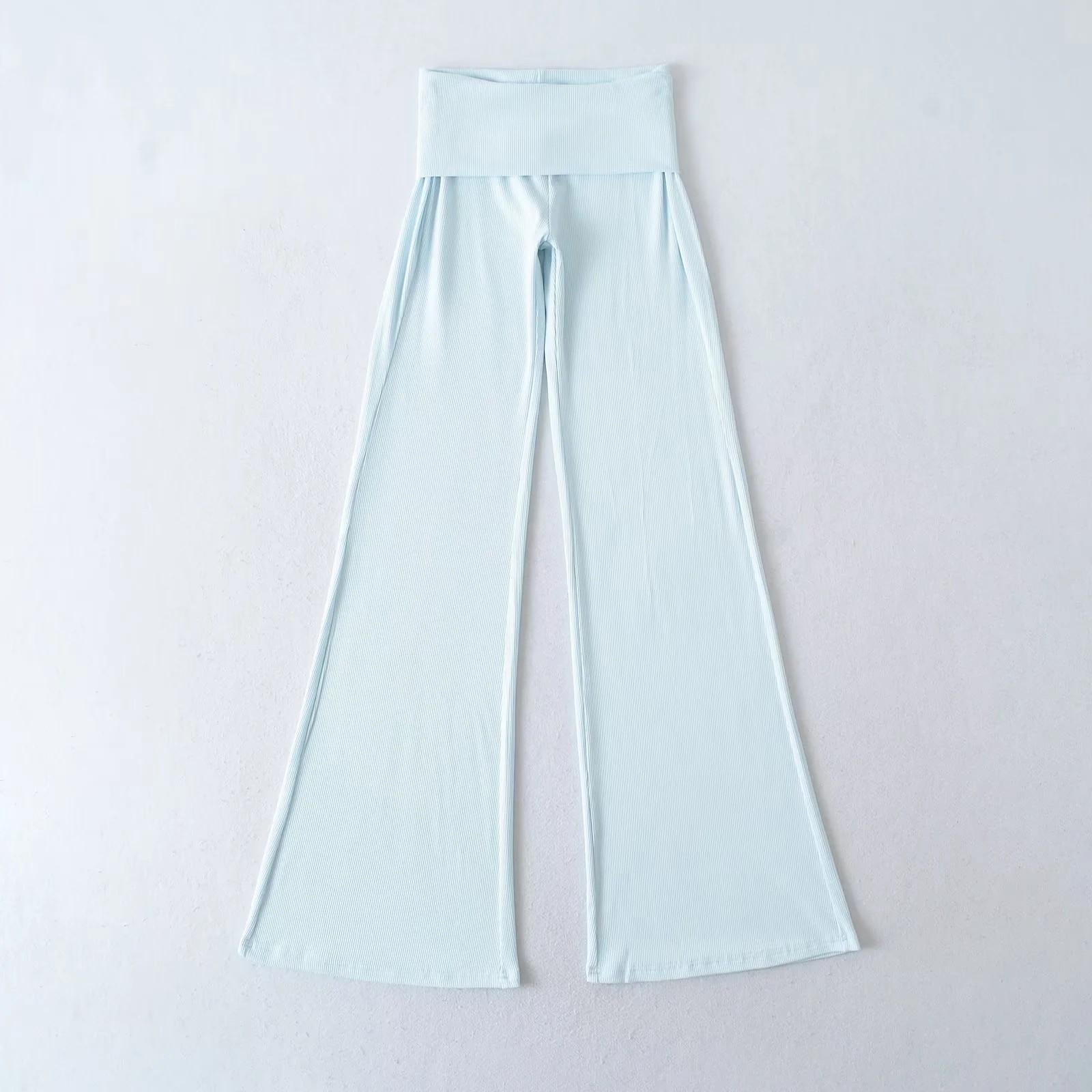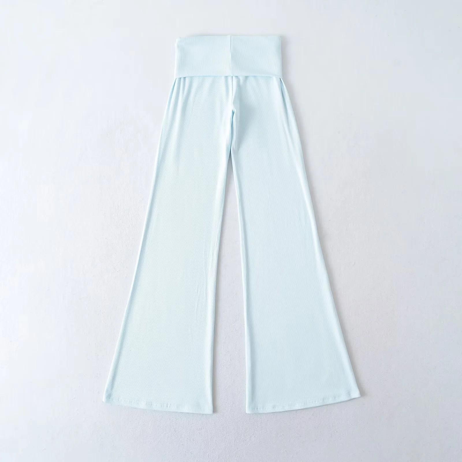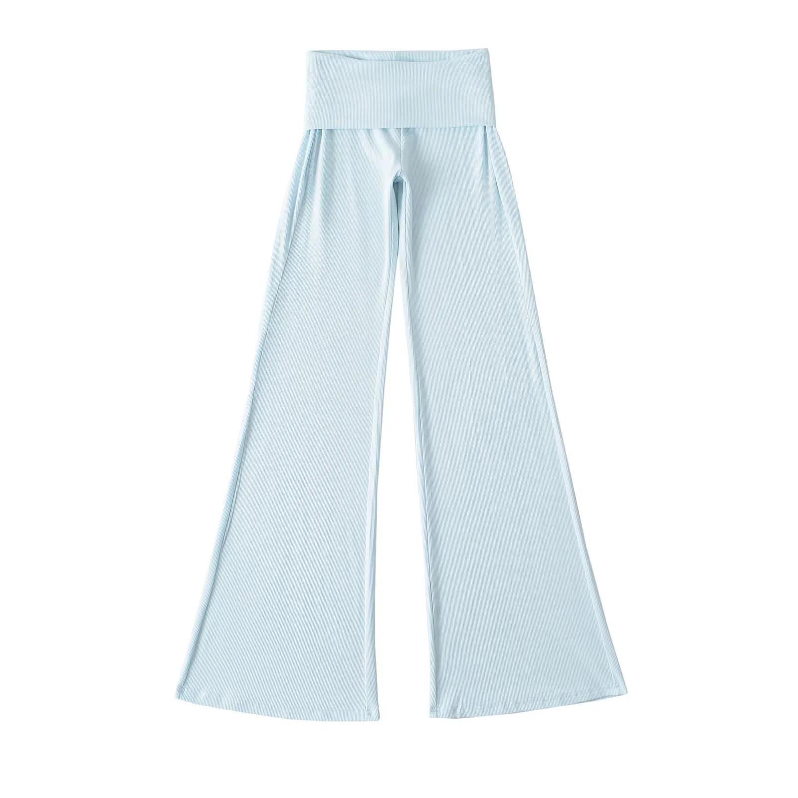 Verão 2025 Nova Calça Flare Slim de Cintura Alta Fashion Elástica Drapeada Versátil Casual Calça Longa Feminina Chic