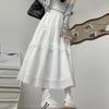 Saia Feminina 2025 Verão Novo Estilo Fada Francesa Branco com Renda Emendada Comprimento Médio Bolo A-Line Saia para Mulheres