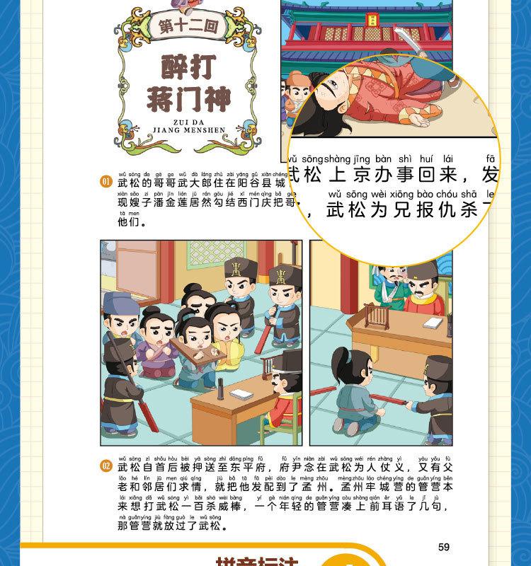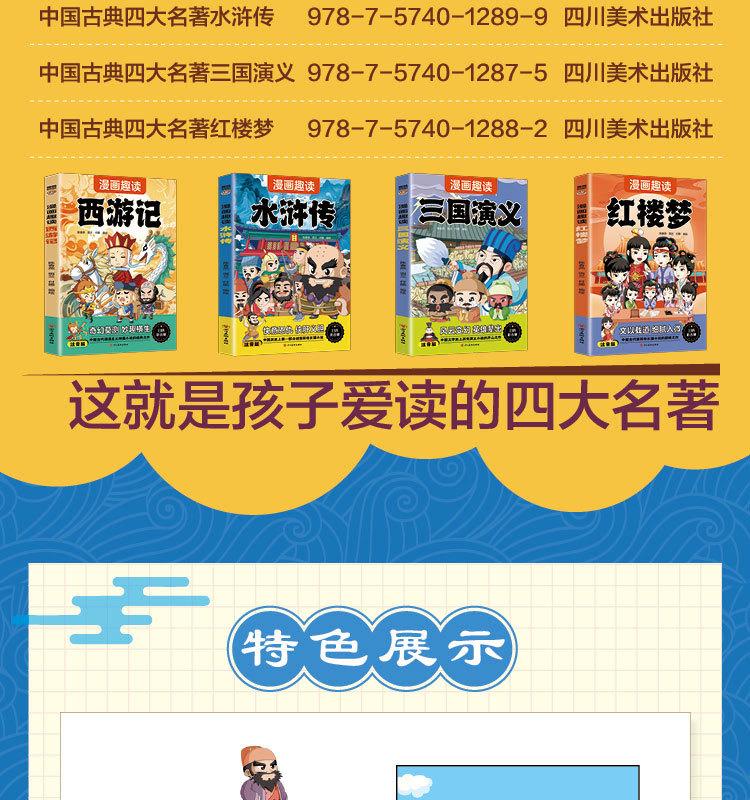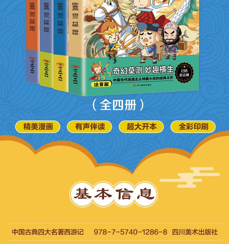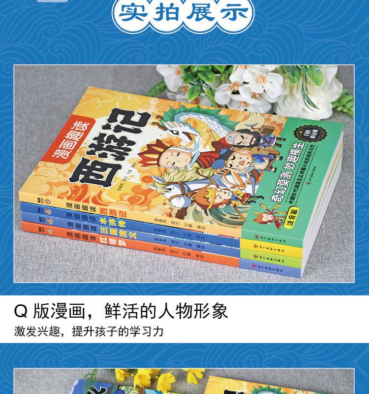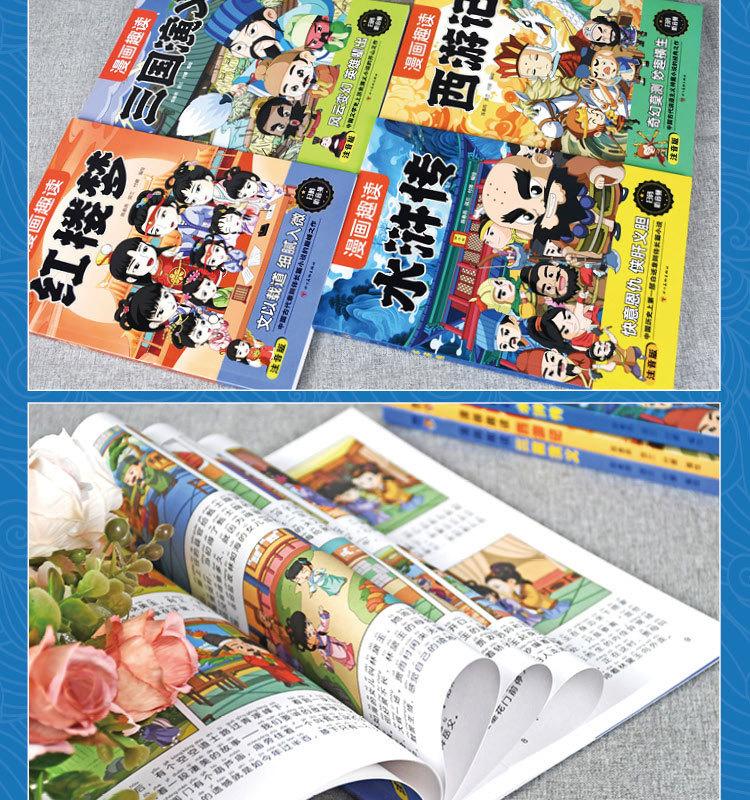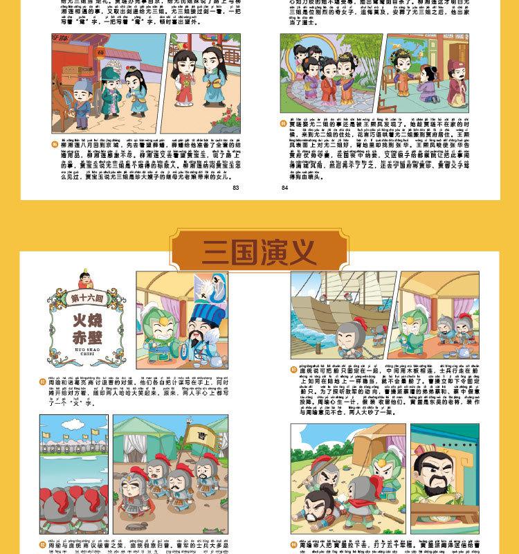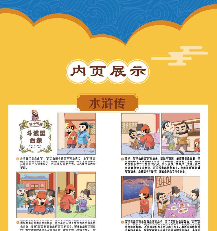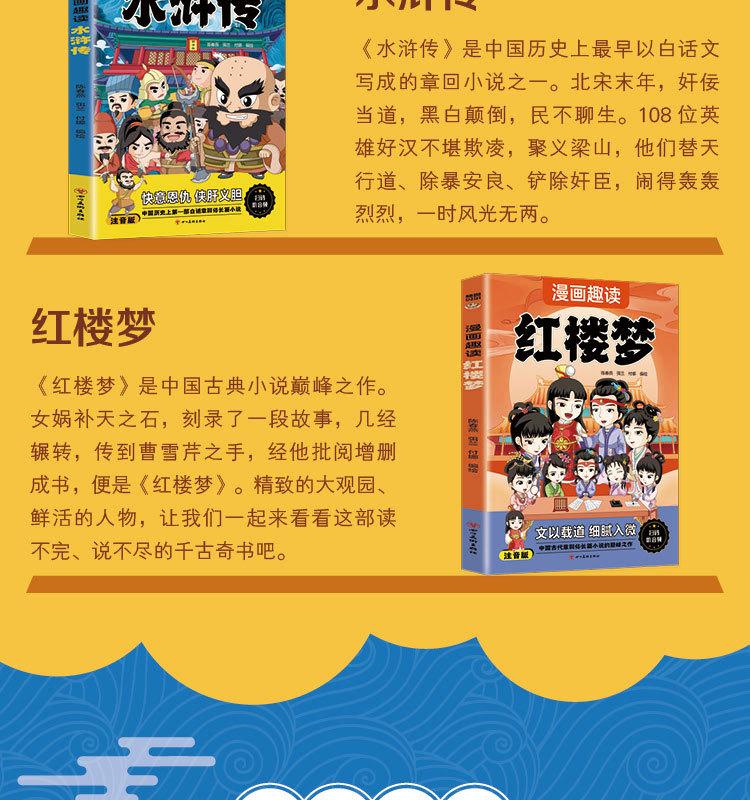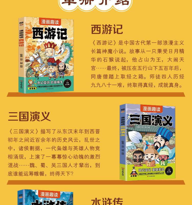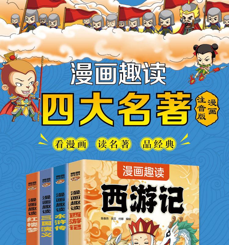 Quatro Livros de Banda Desenhada Famosos com Notação Fonética, Banda Desenhada Infantil, Leitura Divertida de Quatro Livros Famosos, Jornada ao Oeste, Romance dos Três Reinos, Mansão Vermelha e Margem da Água