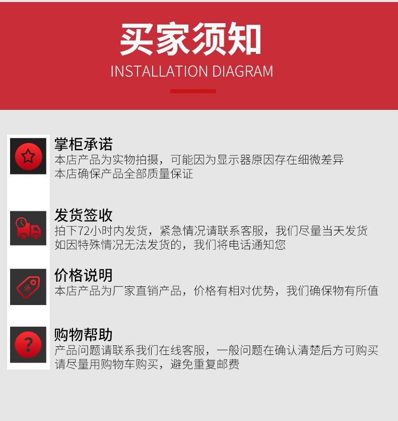 1. Como nossa empresa é um fornecedor direto da fábrica, certifique-se de entender as especificações de parâmetros/quantidade e outros detalhes do produto necessário antes de comprar, e confirme conosco se está em estoque e se pode ser personalizado para evitar problemas desnecessários.