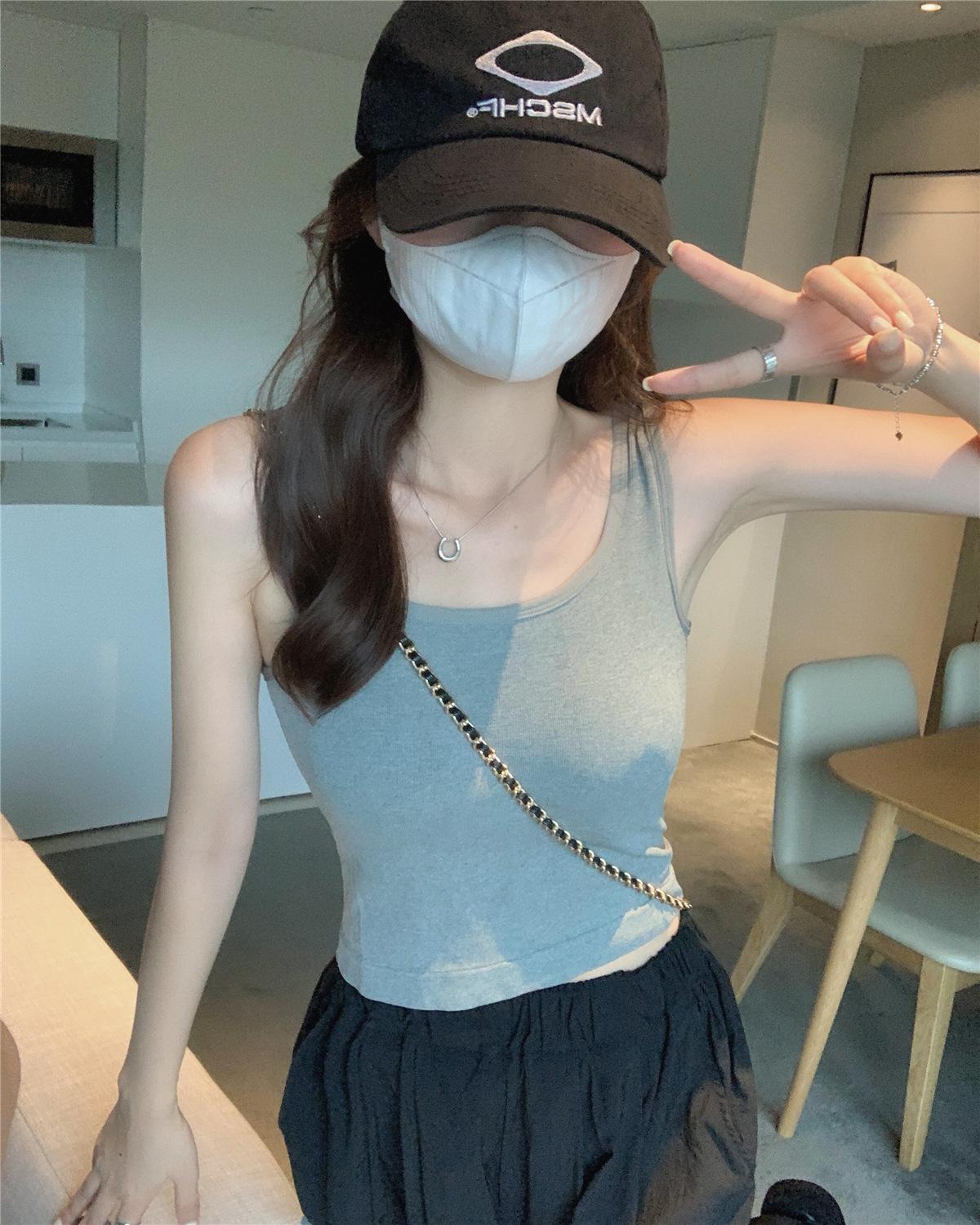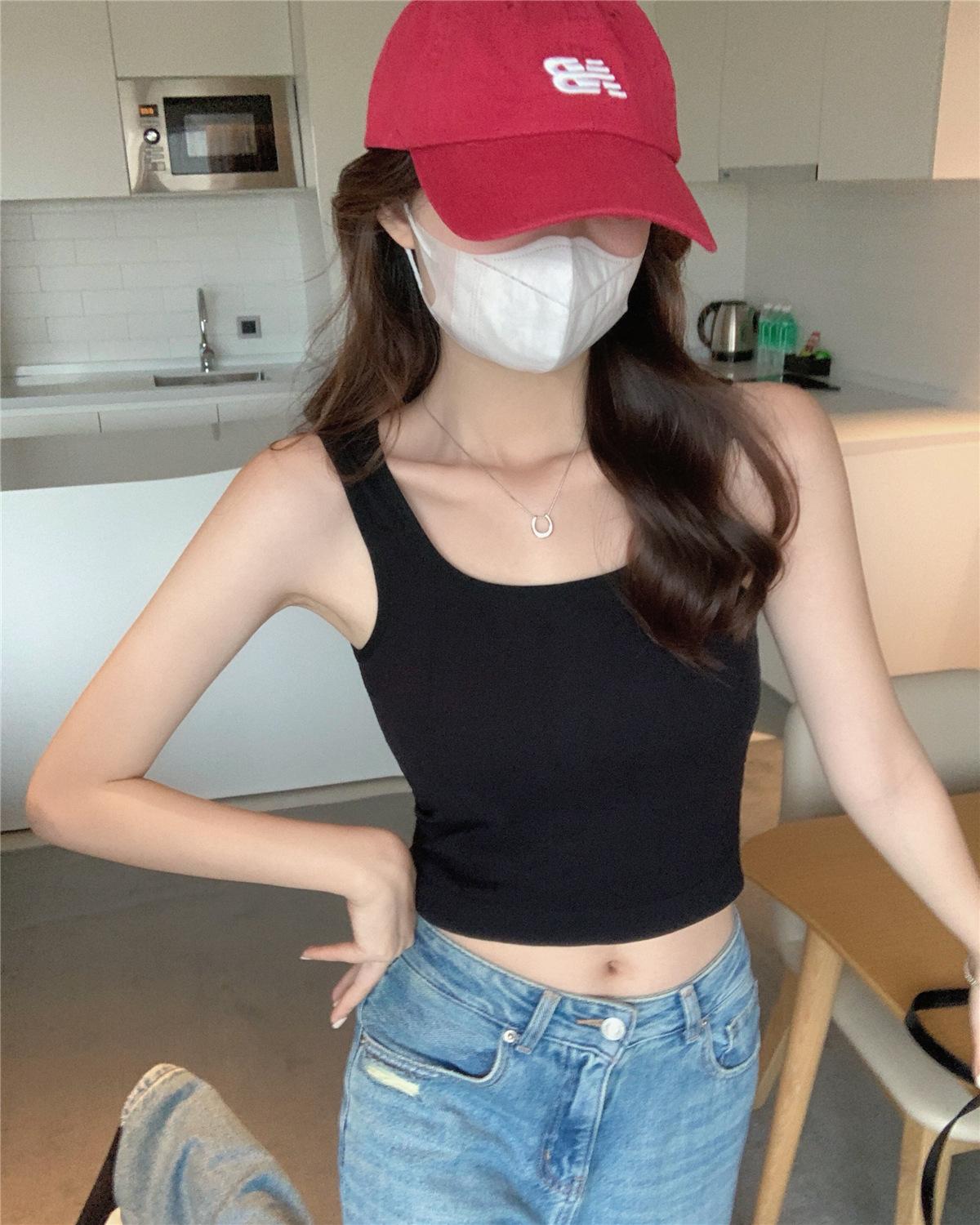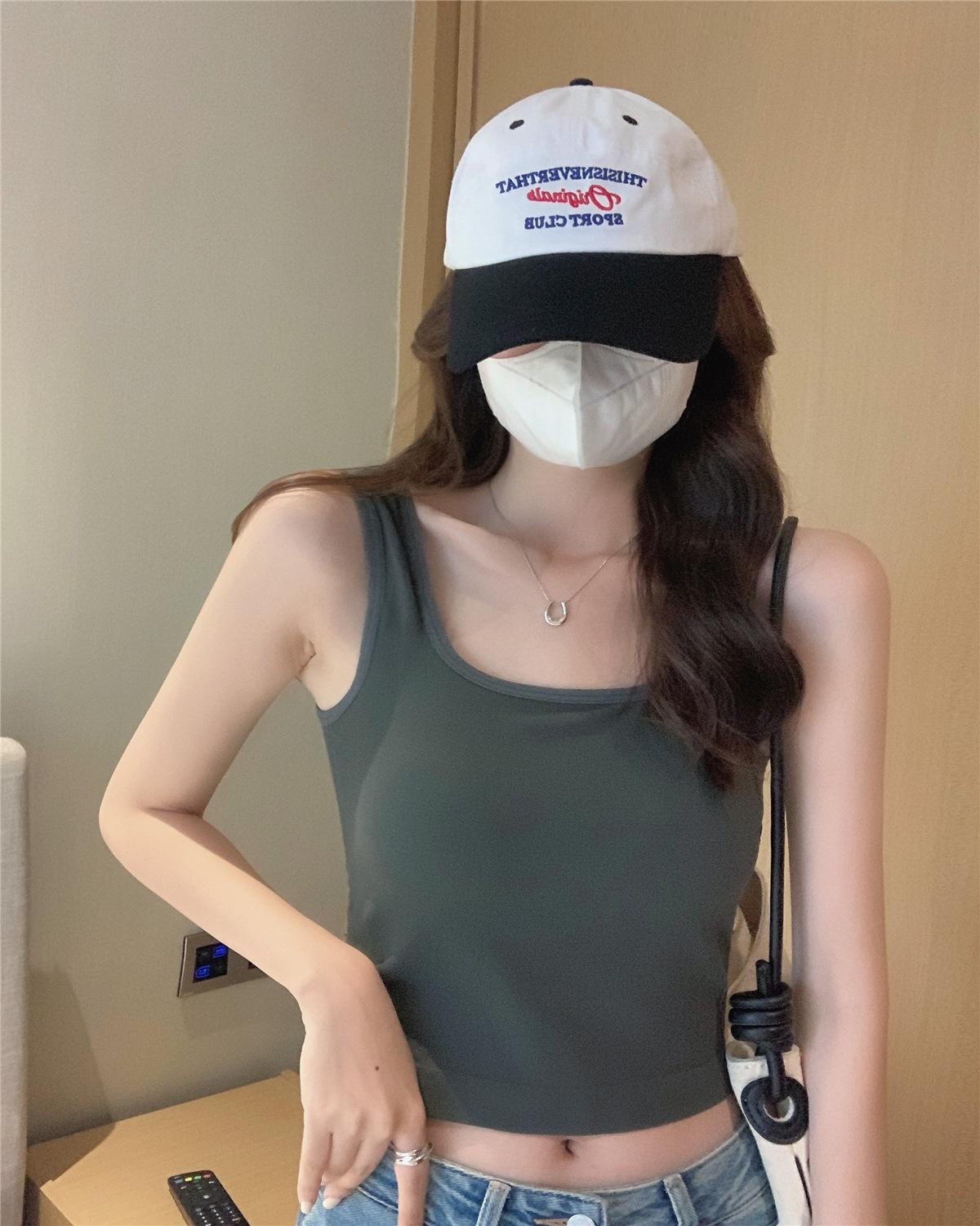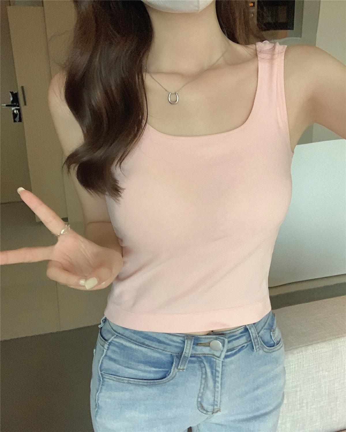 Top Curto Feminino de Suspensório Interno Primavera e Verão Hot Girl com Colete Acolchoado
