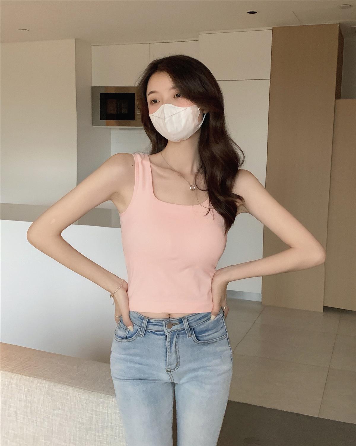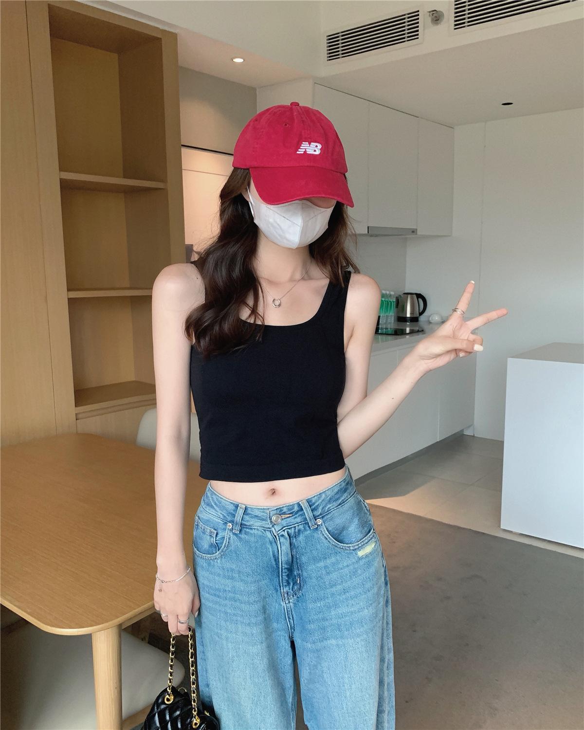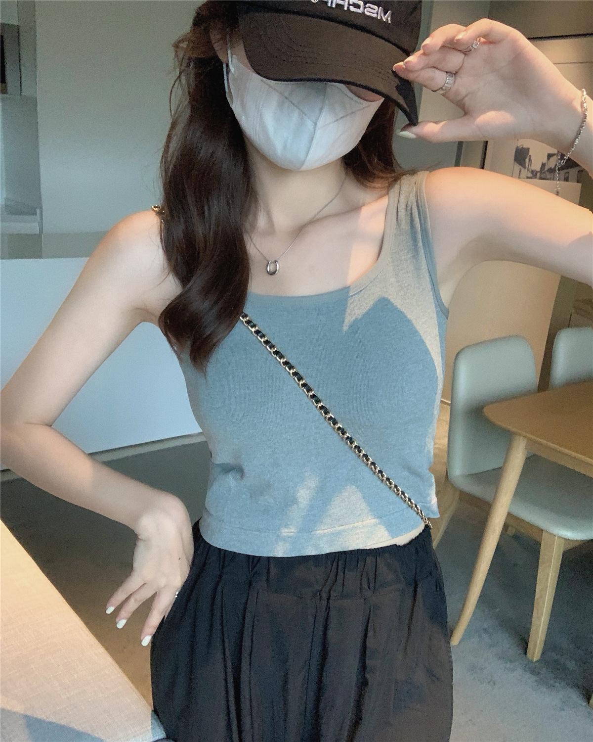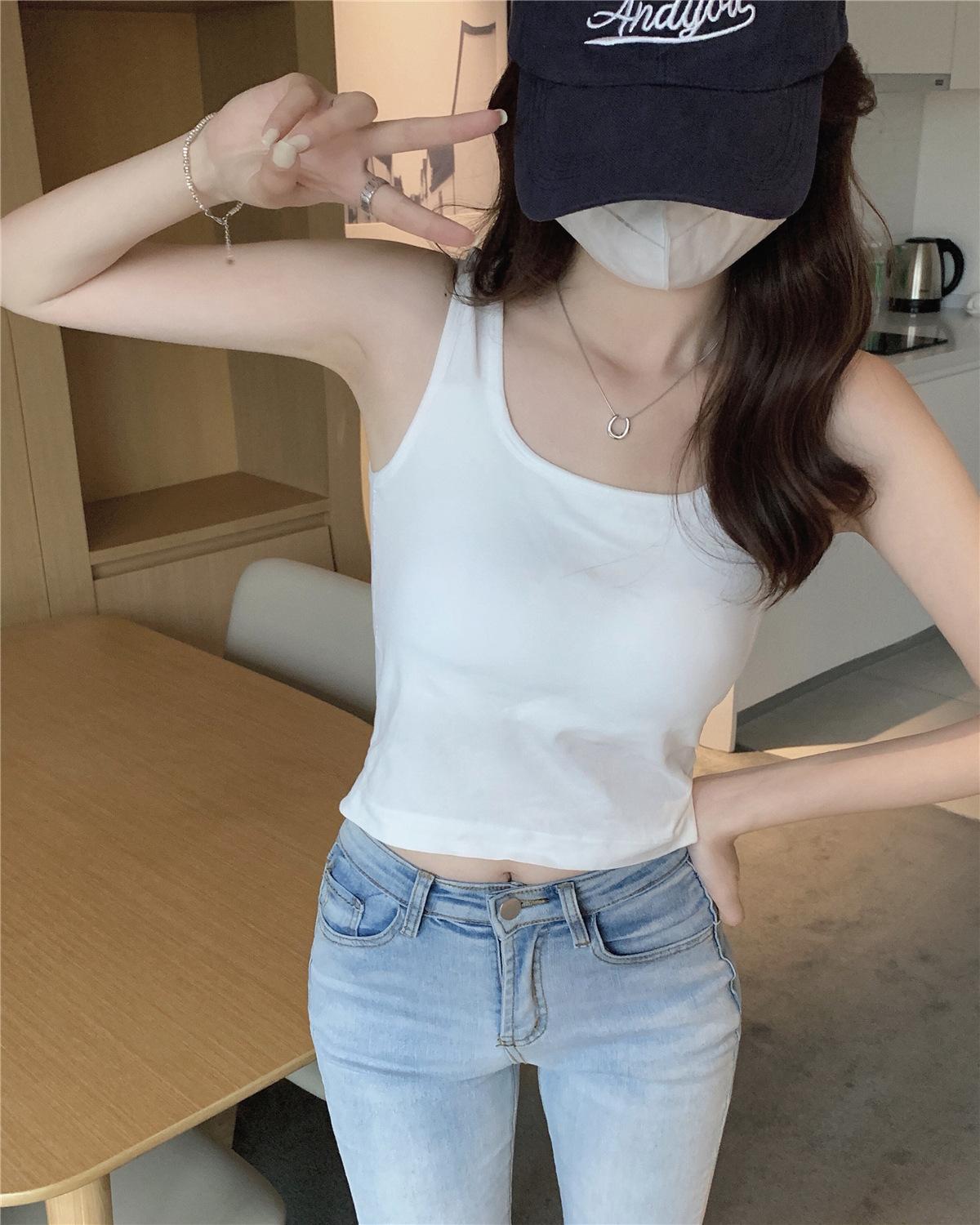 Top Curto Feminino de Suspensório Interno Primavera e Verão Hot Girl com Colete Acolchoado