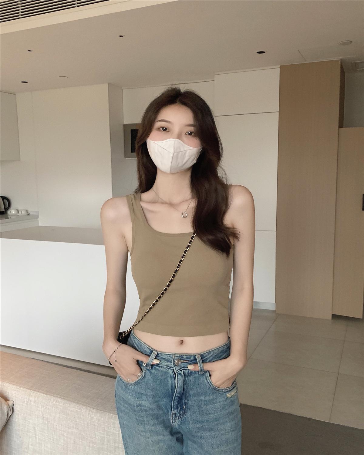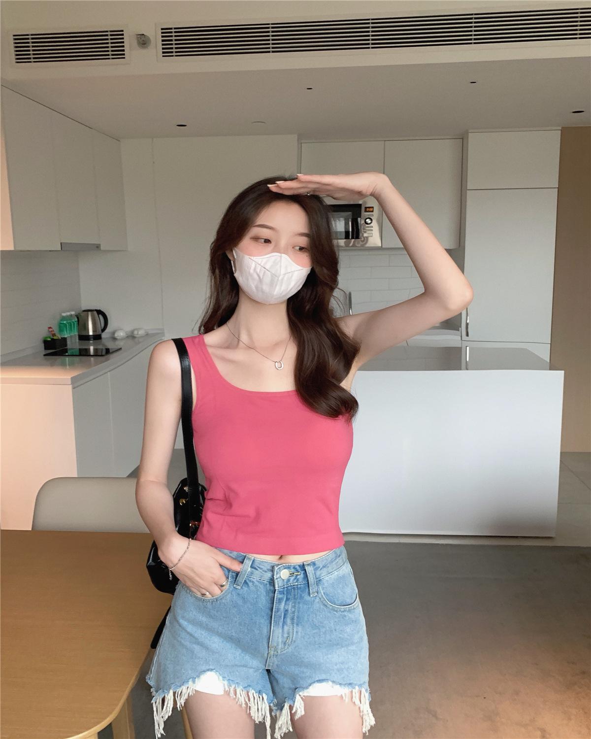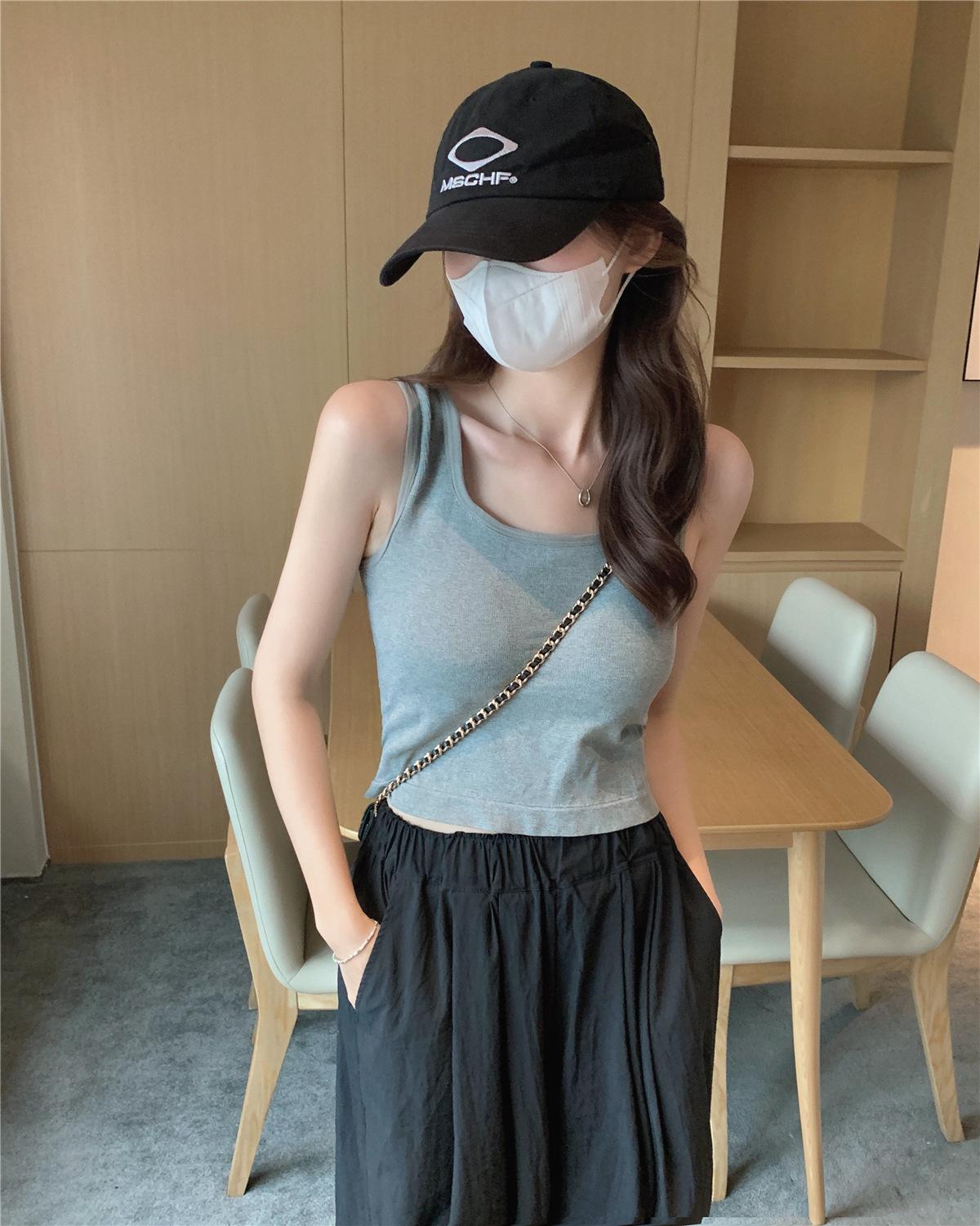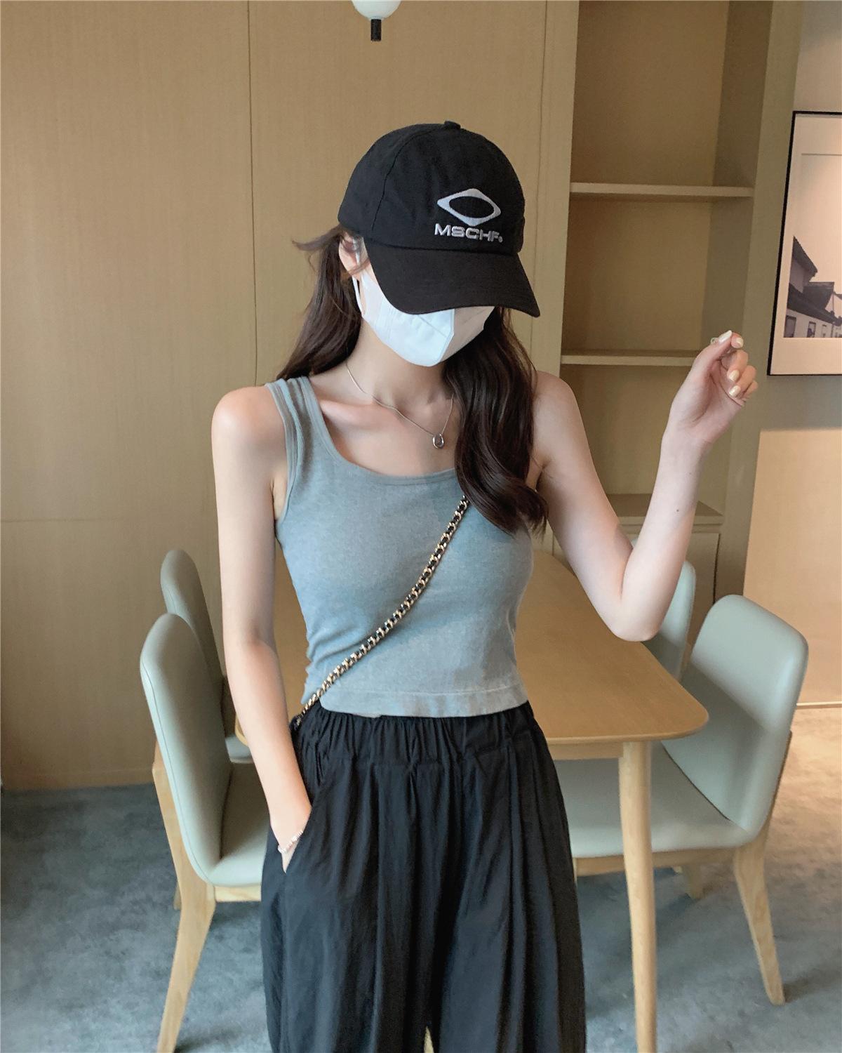 Top Curto Feminino de Suspensório Interno Primavera e Verão Hot Girl com Colete Acolchoado