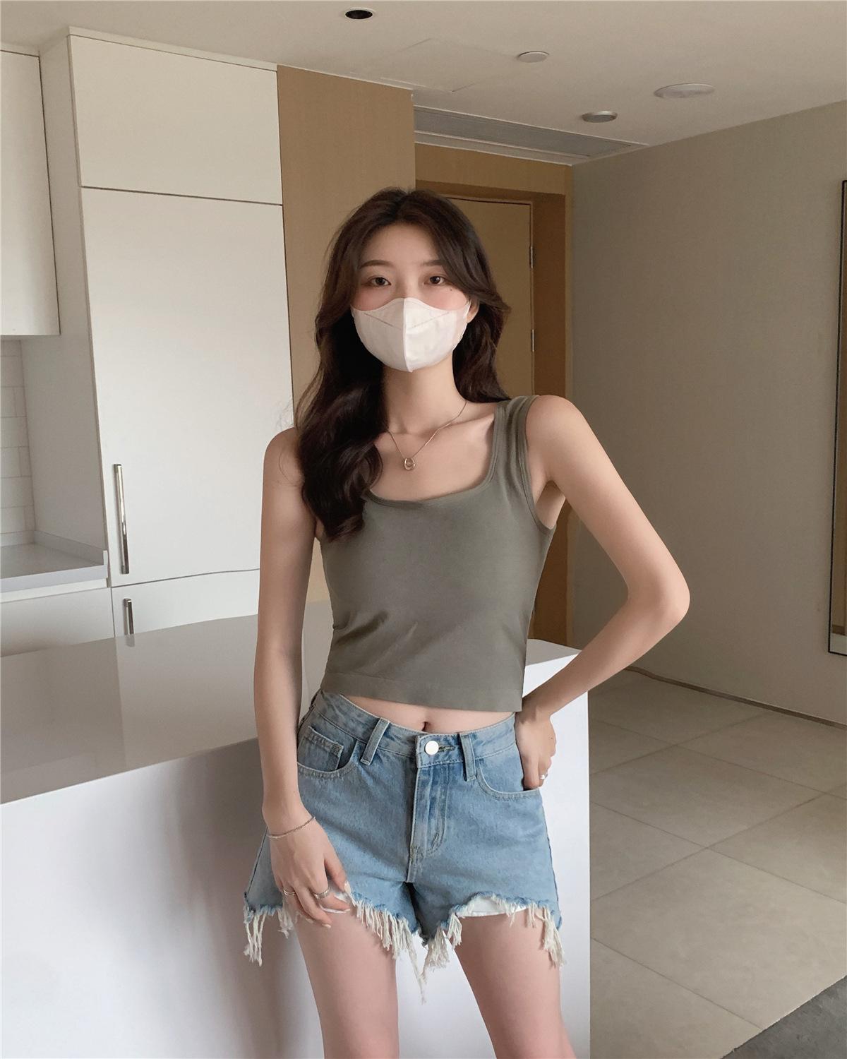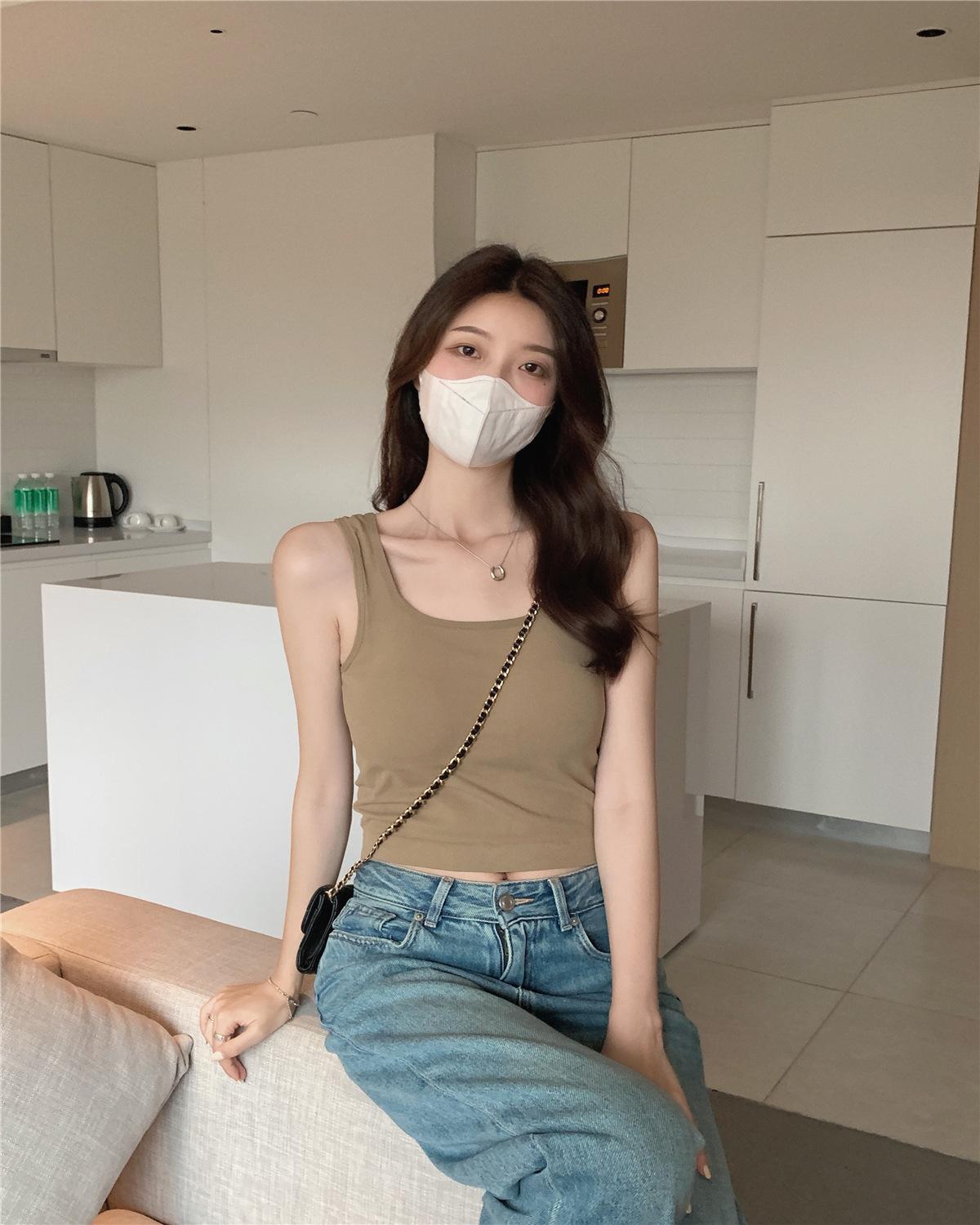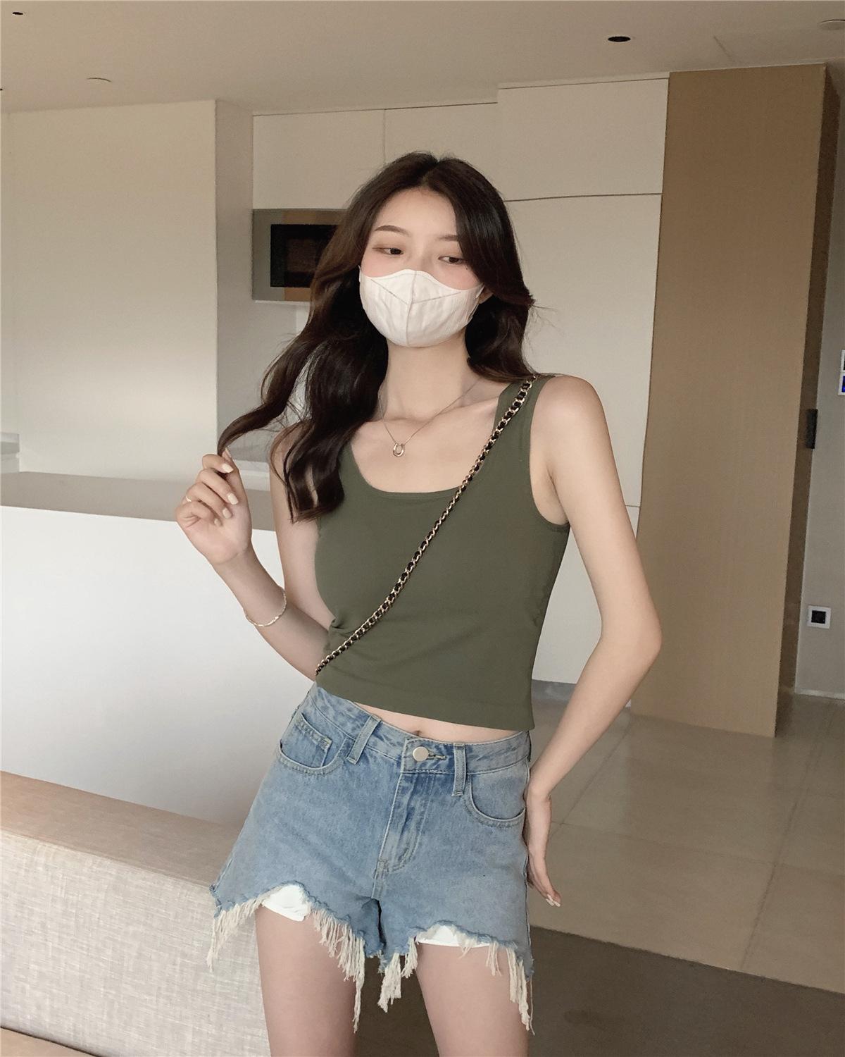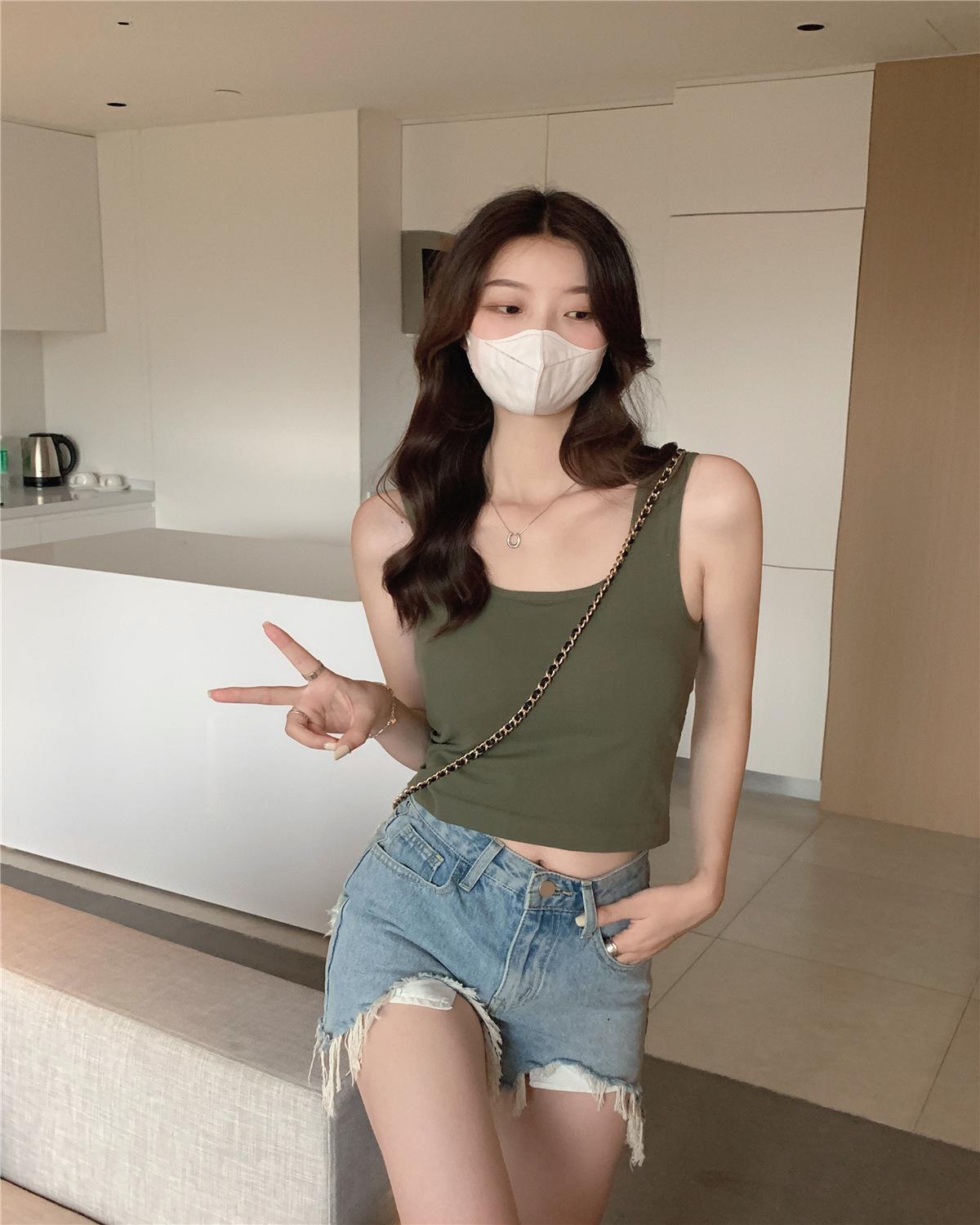 Top Curto Feminino de Suspensório Interno Primavera e Verão Hot Girl com Colete Acolchoado