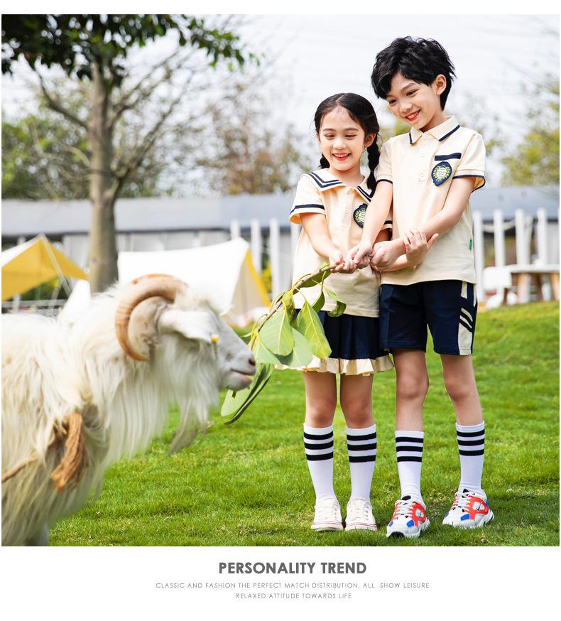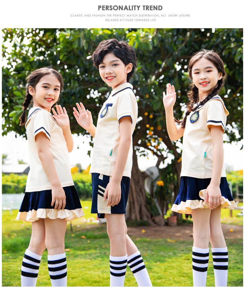 Uniforme Escolar de Manga Curta para Alunos do Ensino Fundamental Roupa de Verão para Jardim de Infância Roupa de Classe Infantil Roupa de Verão Estilo Colegial para Foto de Formatura
