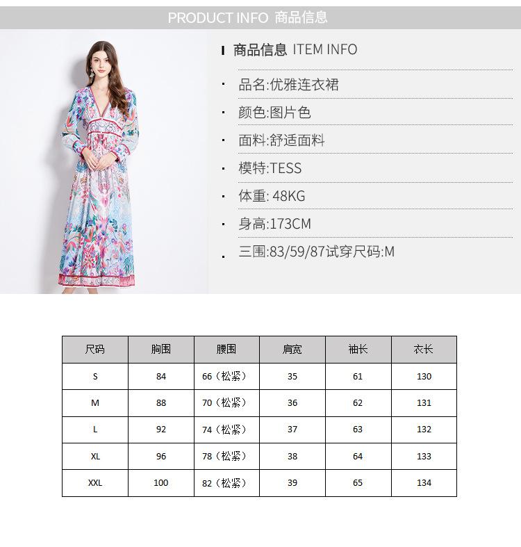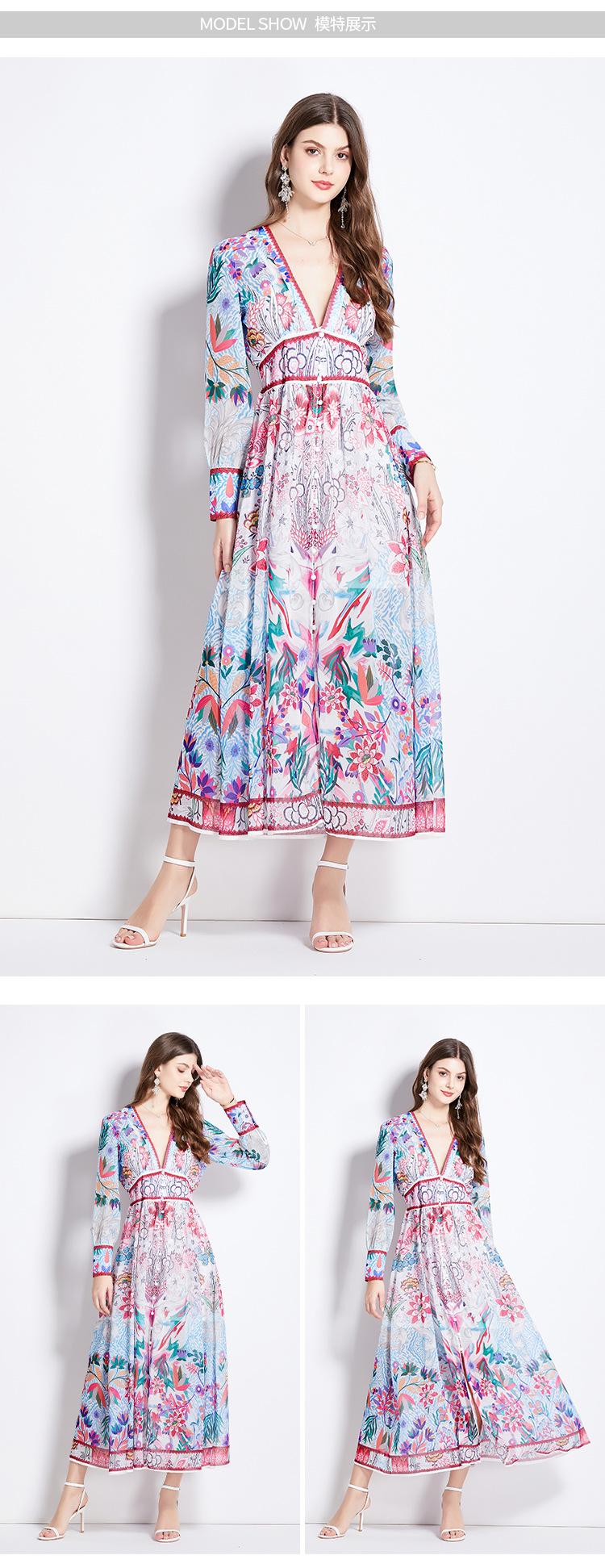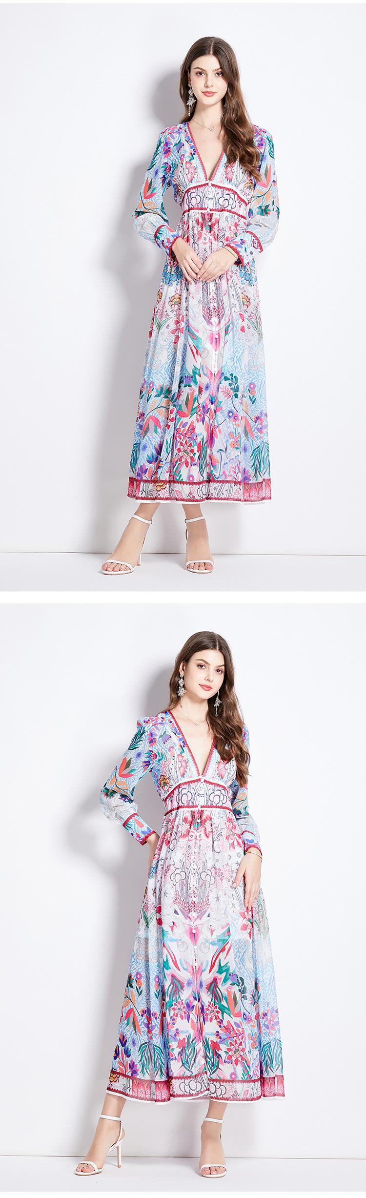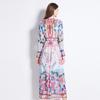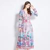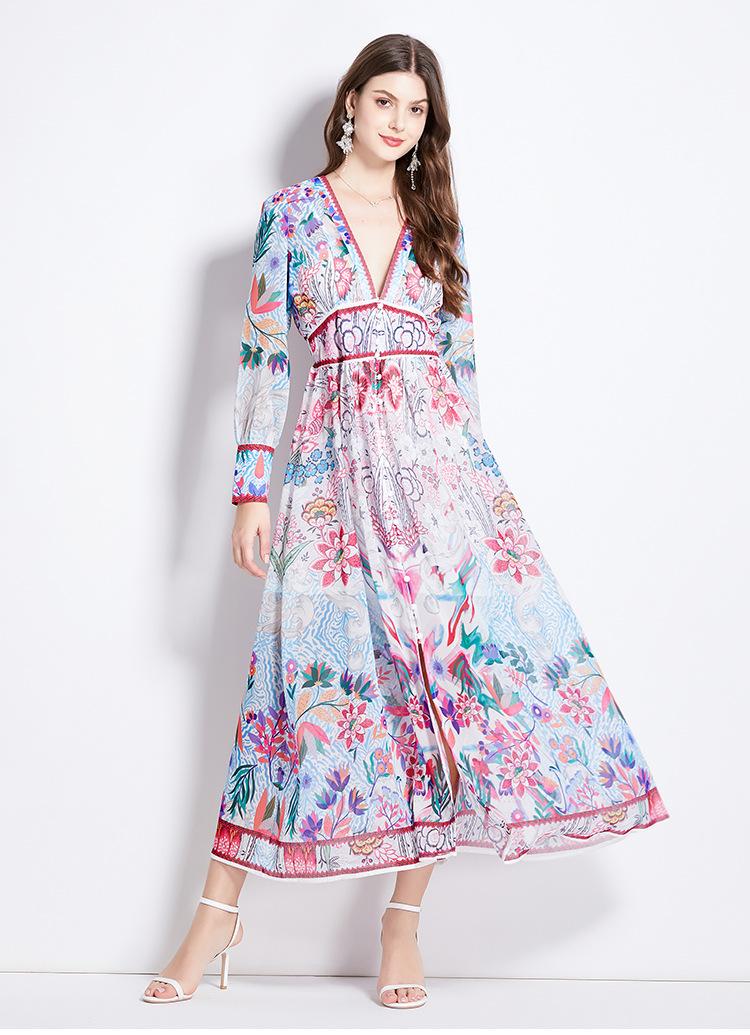 Vestido de Cintura de Manga Comprida Abotoamento Simples Estilo Resort Paisagem Decote V Estampado Manga Comprida
