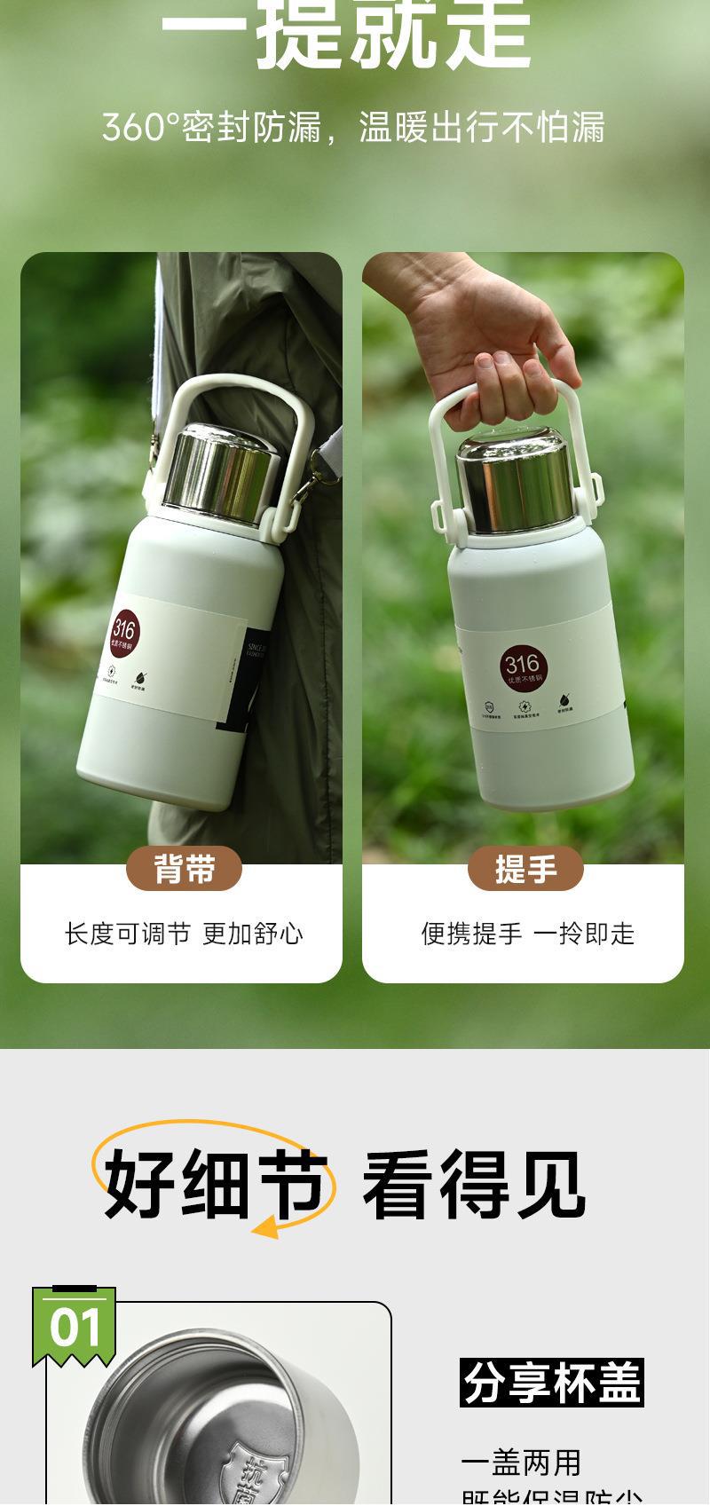 Novo Copo Térmico de Aço Inoxidável 316 de Grande Capacidade Mochila Outdoor Garrafa de Água Esportiva Vácuo Totalmente em Aço Chaleira de Viagem