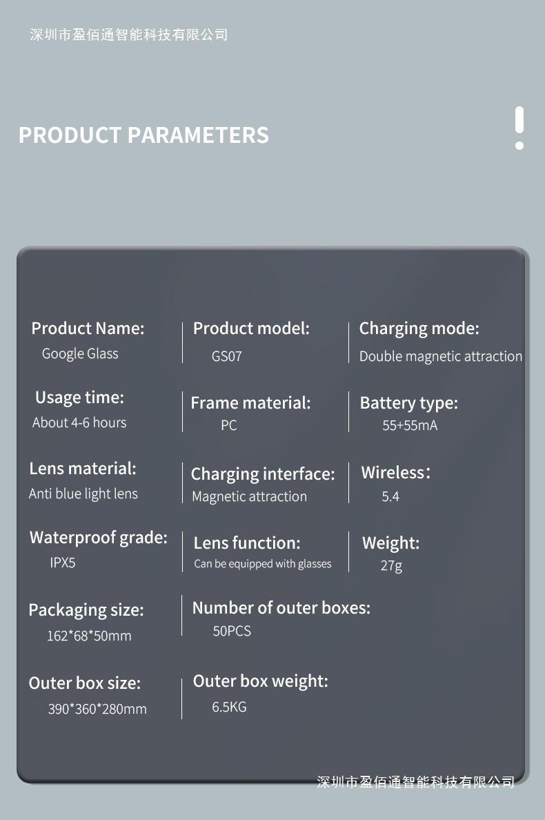 Bluetooth glasses, glasses cloth, glasses bag, magnetic cord, manual