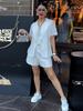 Conjunto Casual de Moda de Manga Curta e Shorts para Mulheres 2025 Verão Novo Conjunto de Três Peças Solto Elegante Tendência