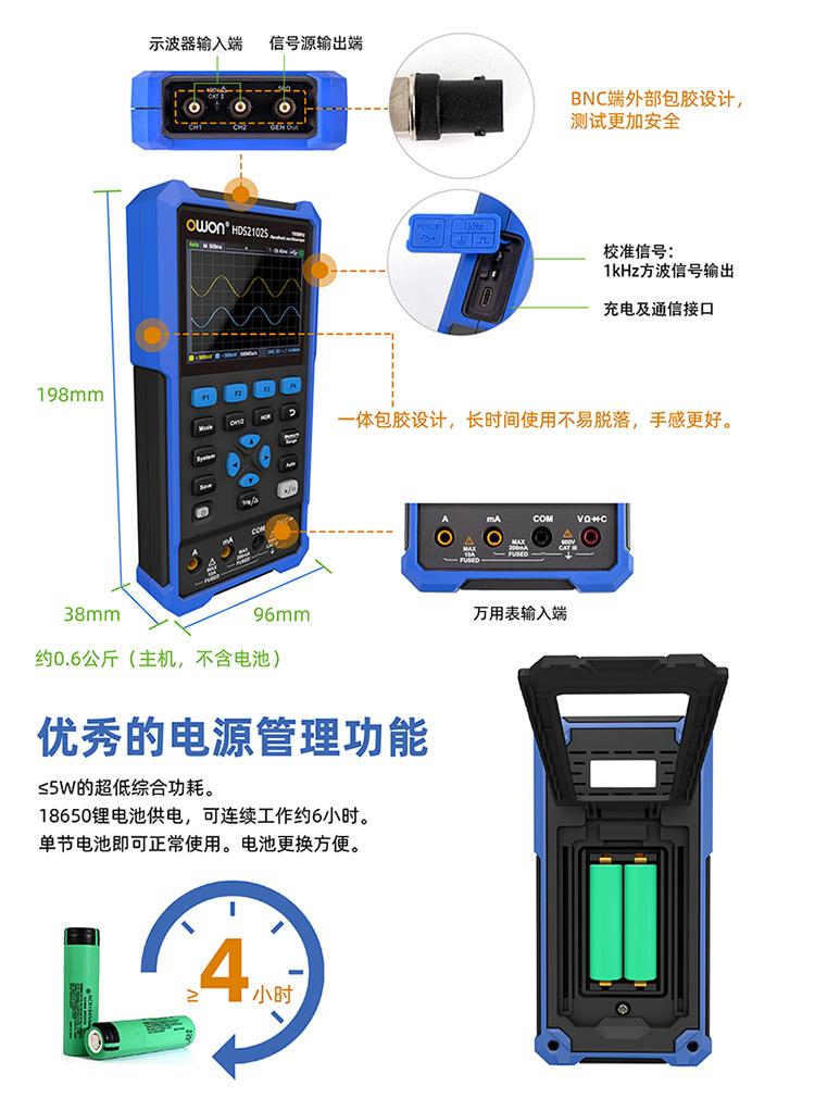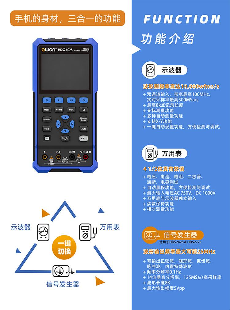 Osciloscópio Owon Lilliput Hds1021/3102Mn Portátil de Mão Faixa Automática Multímetro Dois-Em-Um