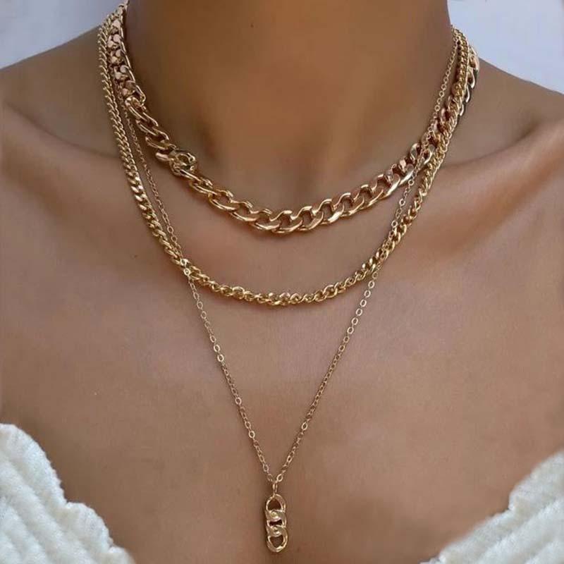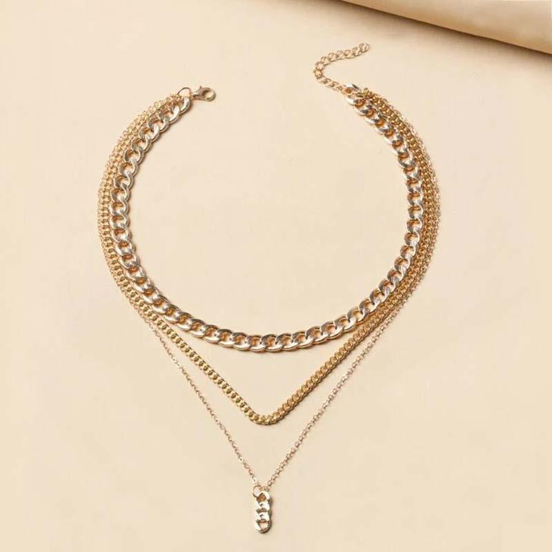 Europa e Estados Unidos Colar de corrente de liga de personalidade simples transfronteiriça Hip Hop Street Shot Costura de corrente grossa exagerada Corrente de clavícula multicamada