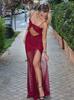 Europeu e Americano 2025 Primavera Amazon Transfronteiriço Novo Cor Pura Malha Renda Sexy Recorte Vestido de Alças