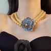 Colar de pérolas com borla em gota de água, camada dupla elegante, corrente para clavícula, colar de nicho de luxo leve, acessórios para vestido de noiva para mulheres, outono e inverno