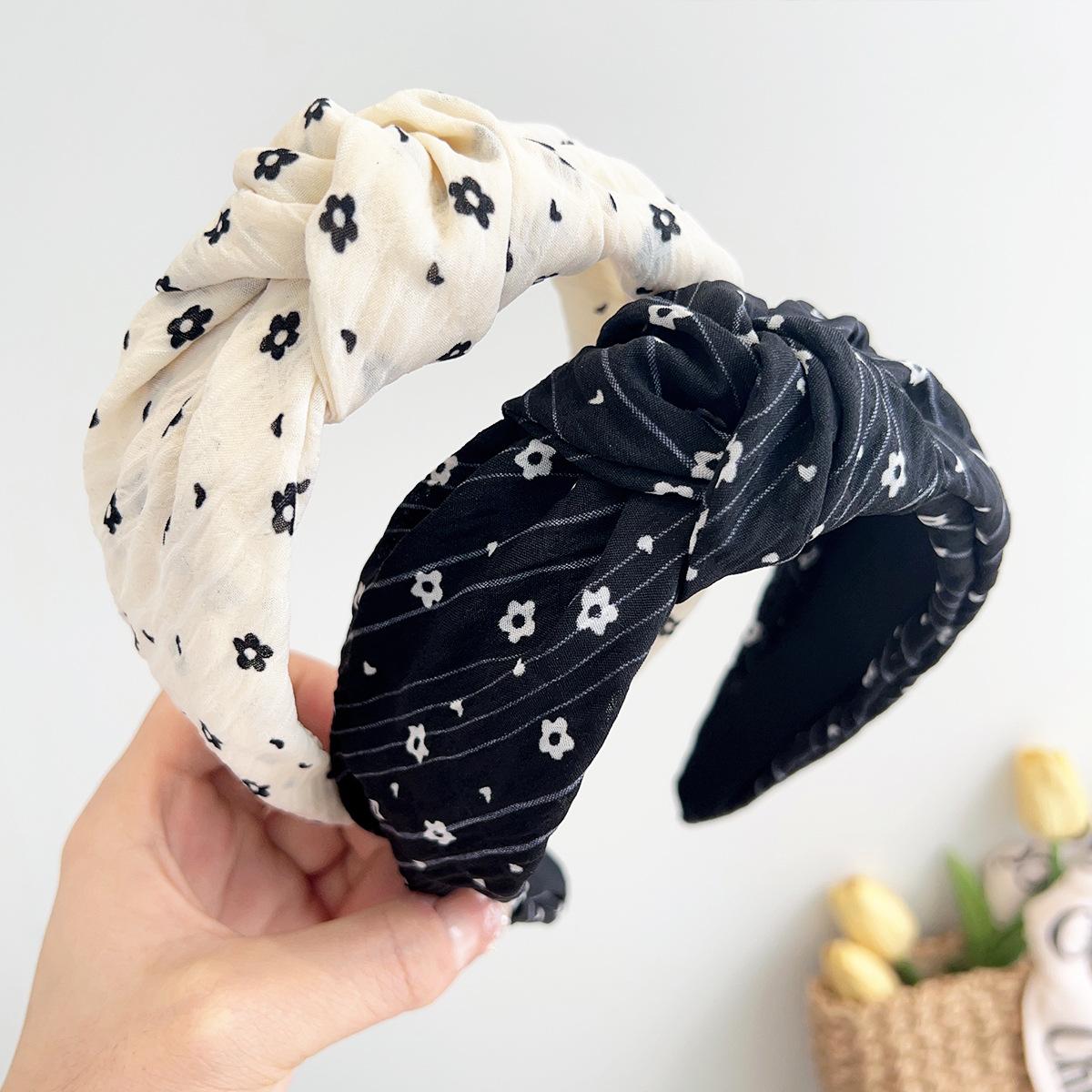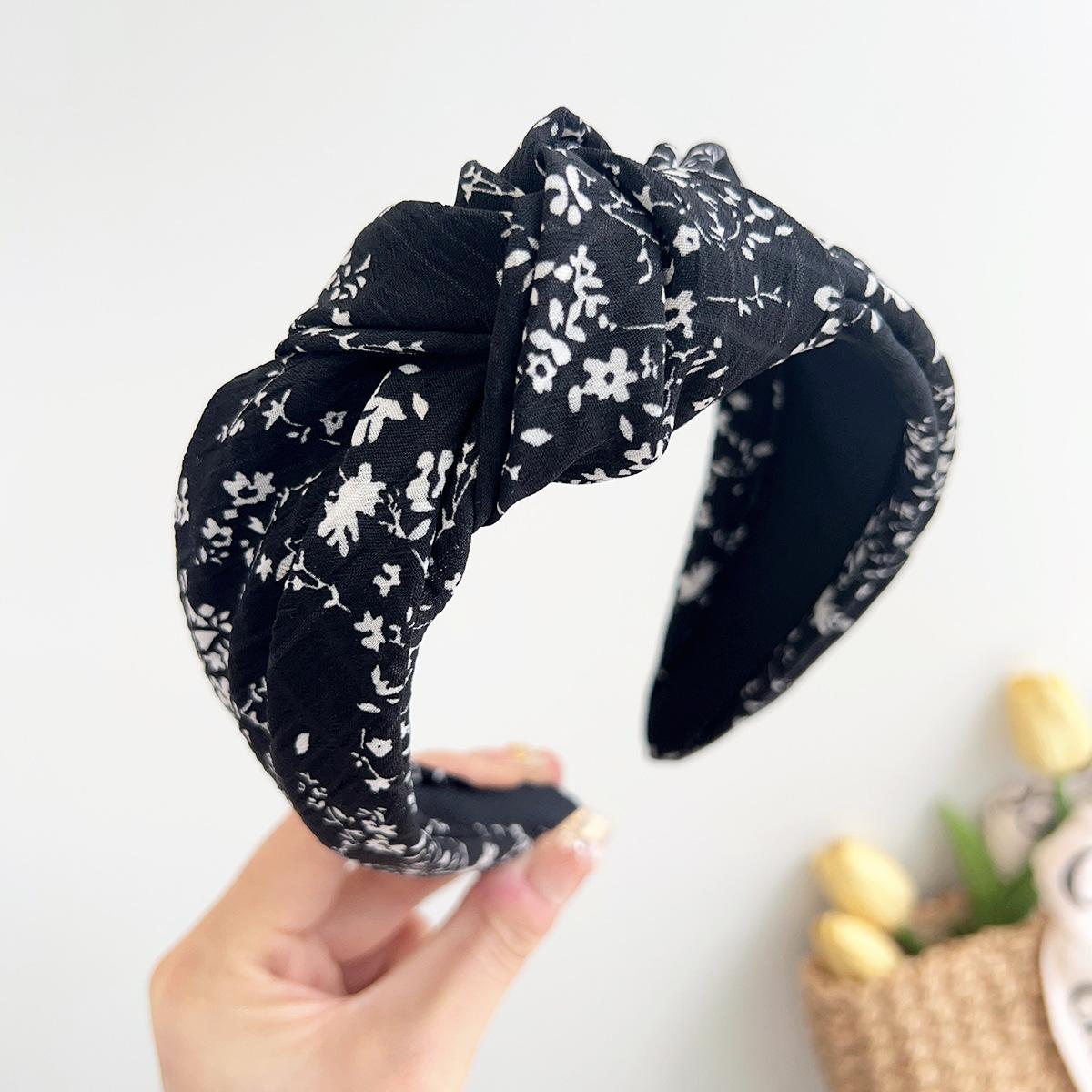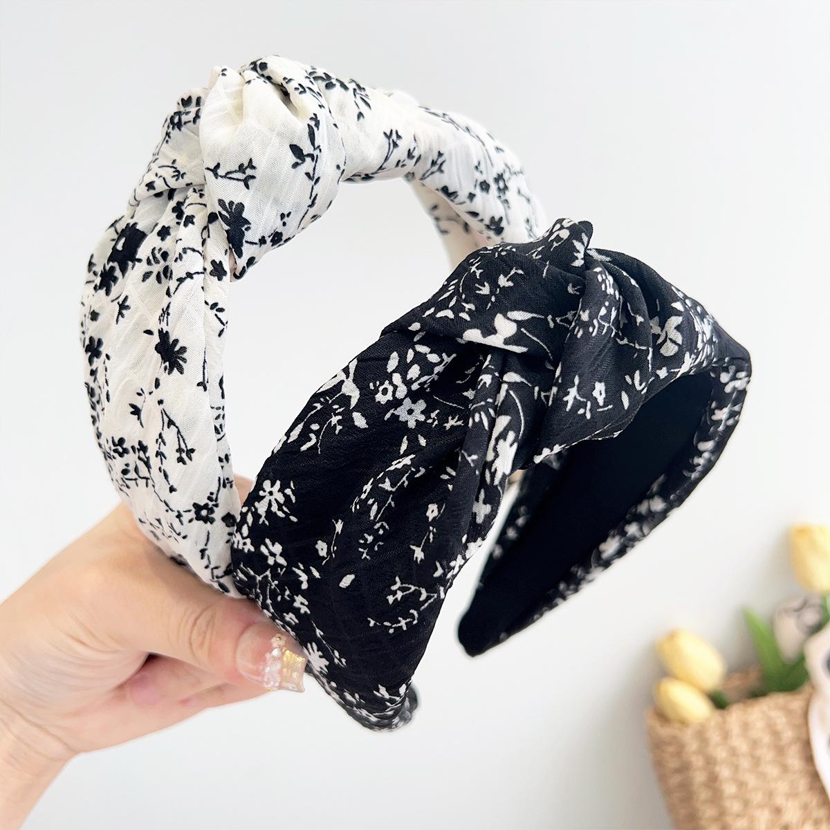 Black + small flowers + knotted headband, Off-white + small flowers + knotted headband, Black + floral + knott...