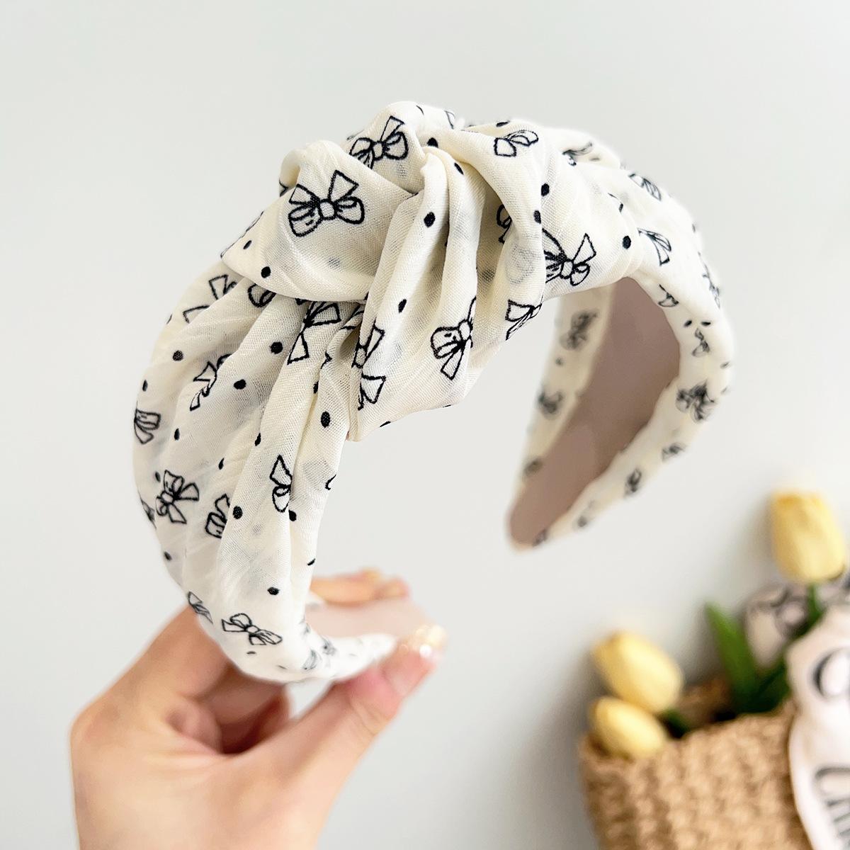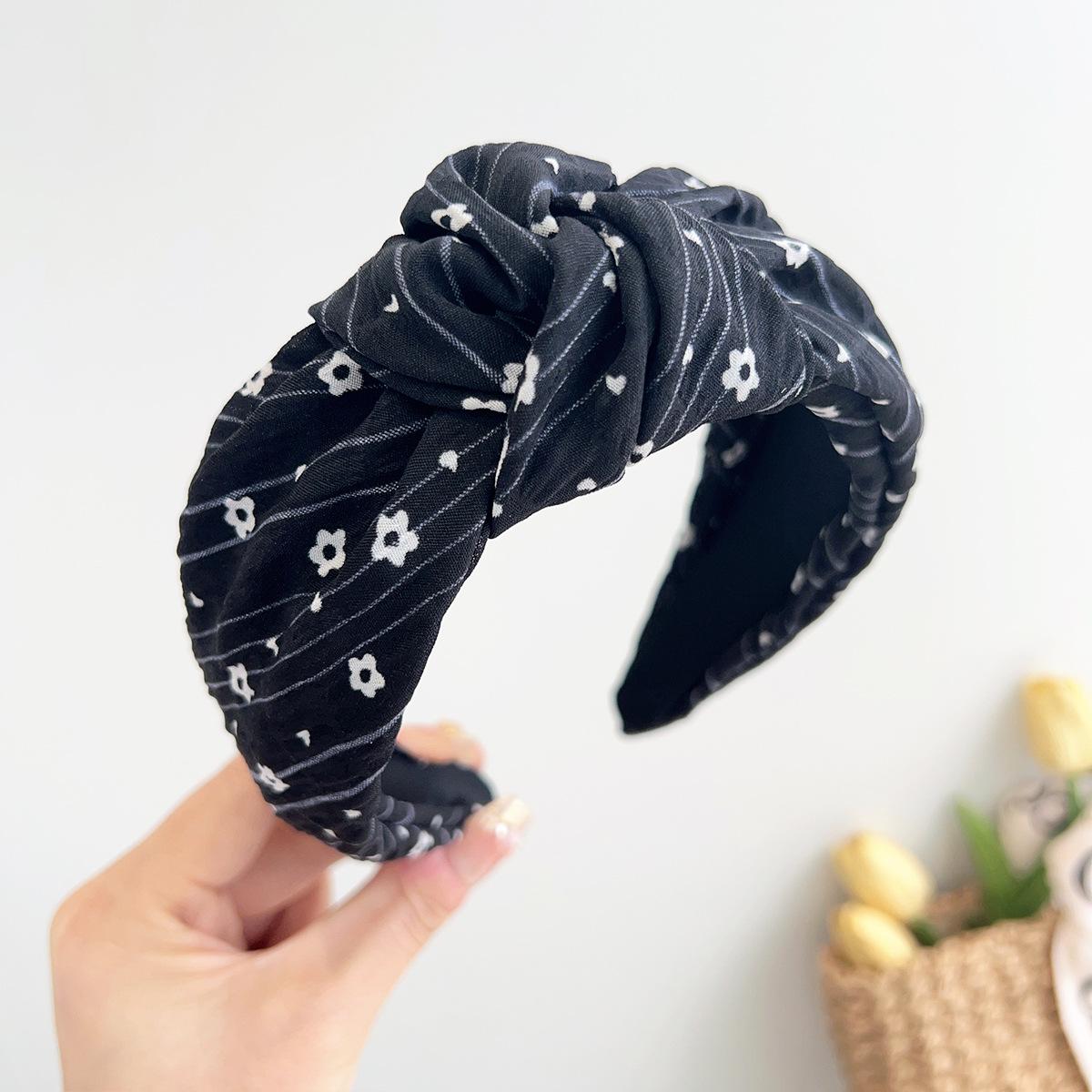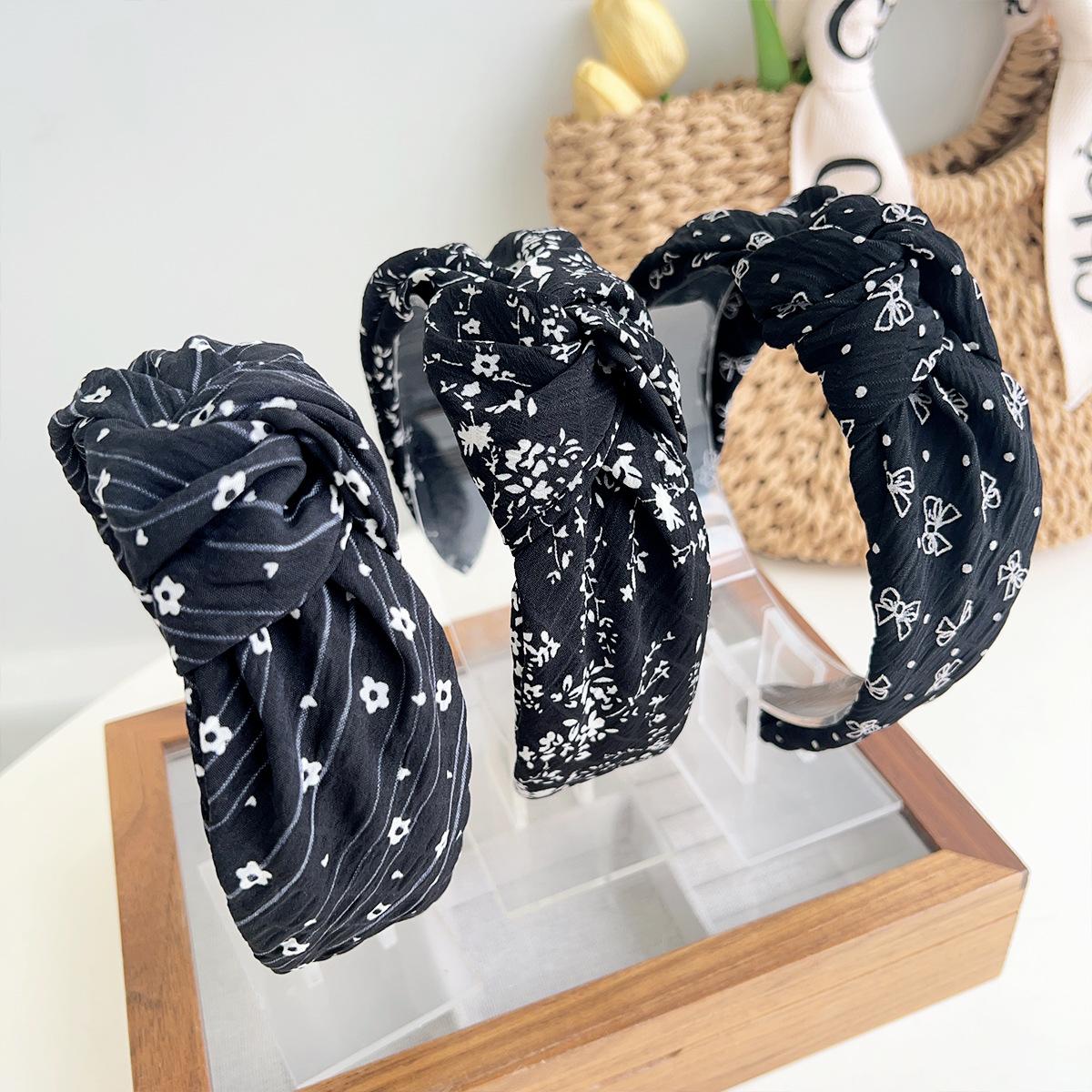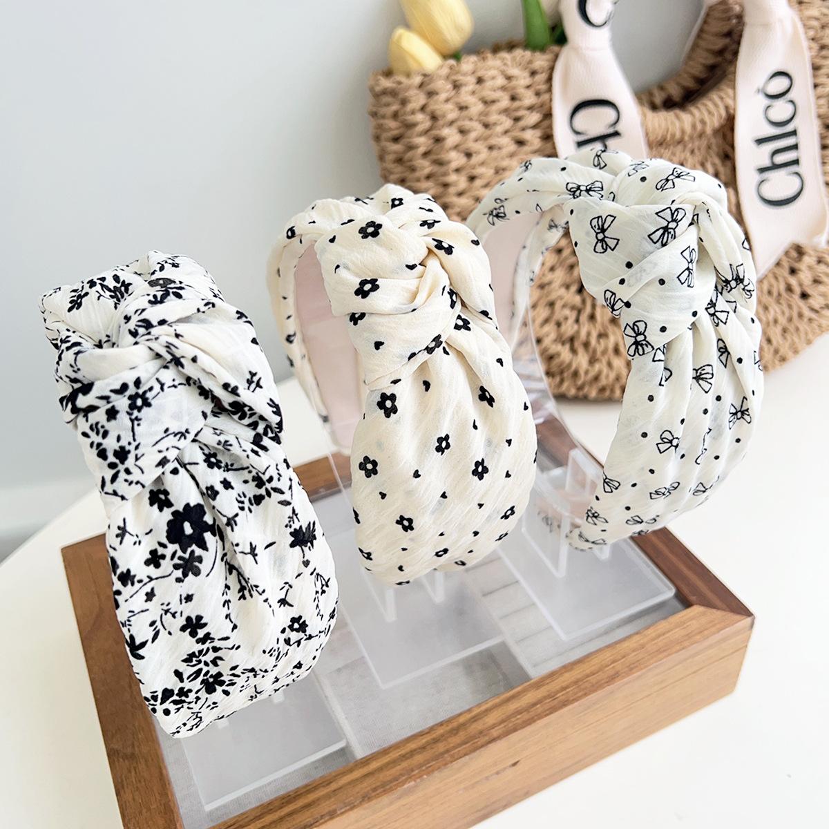 Black + small flowers + knotted headband, Off-white + small flowers + knotted headband, Black + floral + knott...