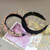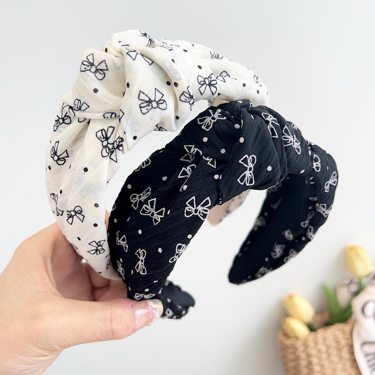 Tiara Floral Nó Estilo Tinta Retrô, Tiara Larga Simples de Tecido Preto e Branco, Acessórios de Cabelo Versáteis, Presilha de Cabelo