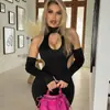 Amazon 2023 Primavera e Verão Novo vestido Europeu e Americano Cor Sólida Sexy Decote Vazado Vestido Justo ao Quadril