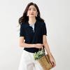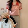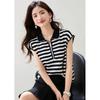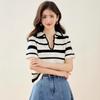 2025 Novo Verão Design Coreano da Moda Listras Contrastantes Estilo Preguiçoso Gola Polo Manga Curta Top Tricotado para Mulheres