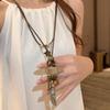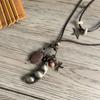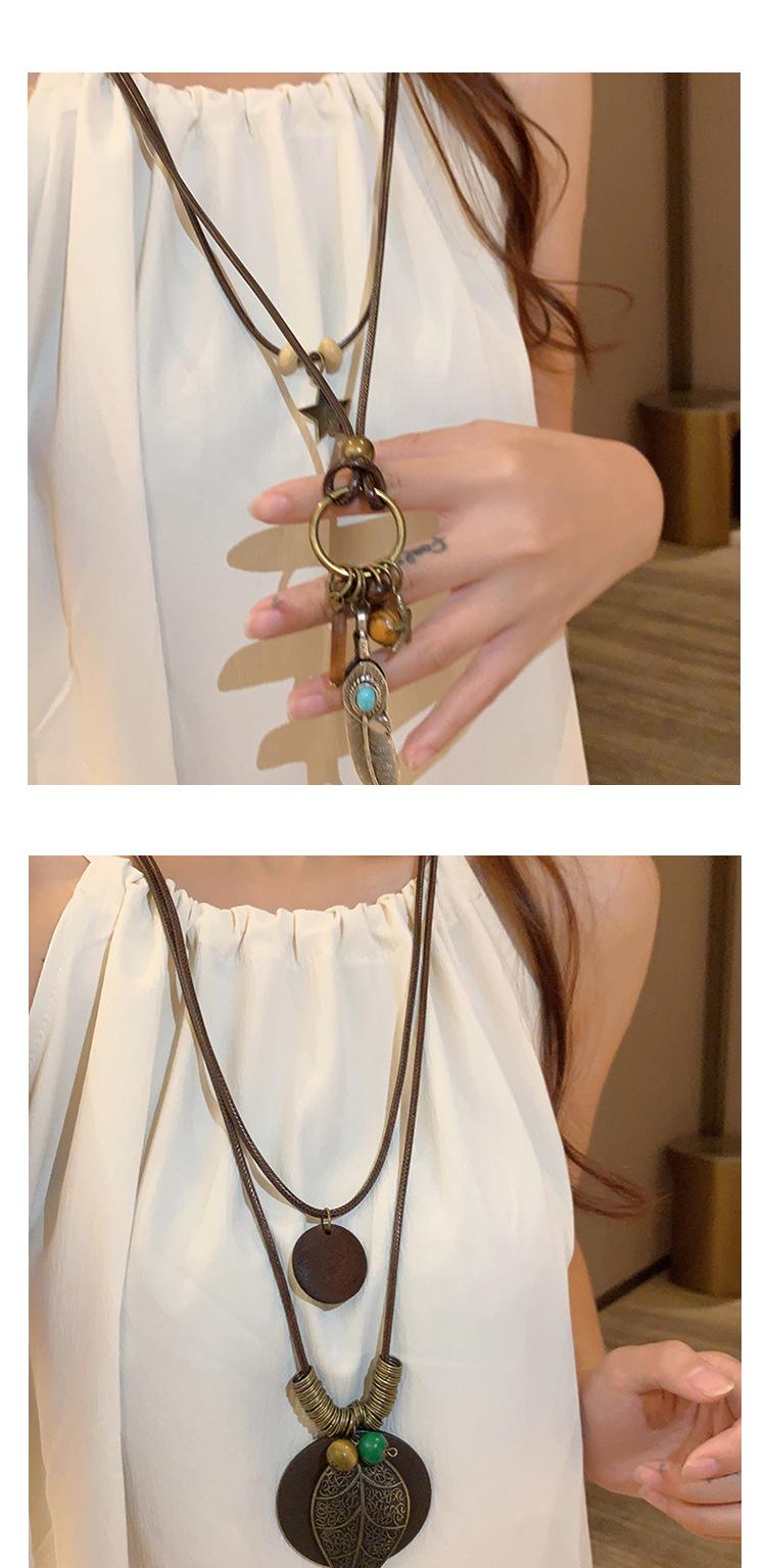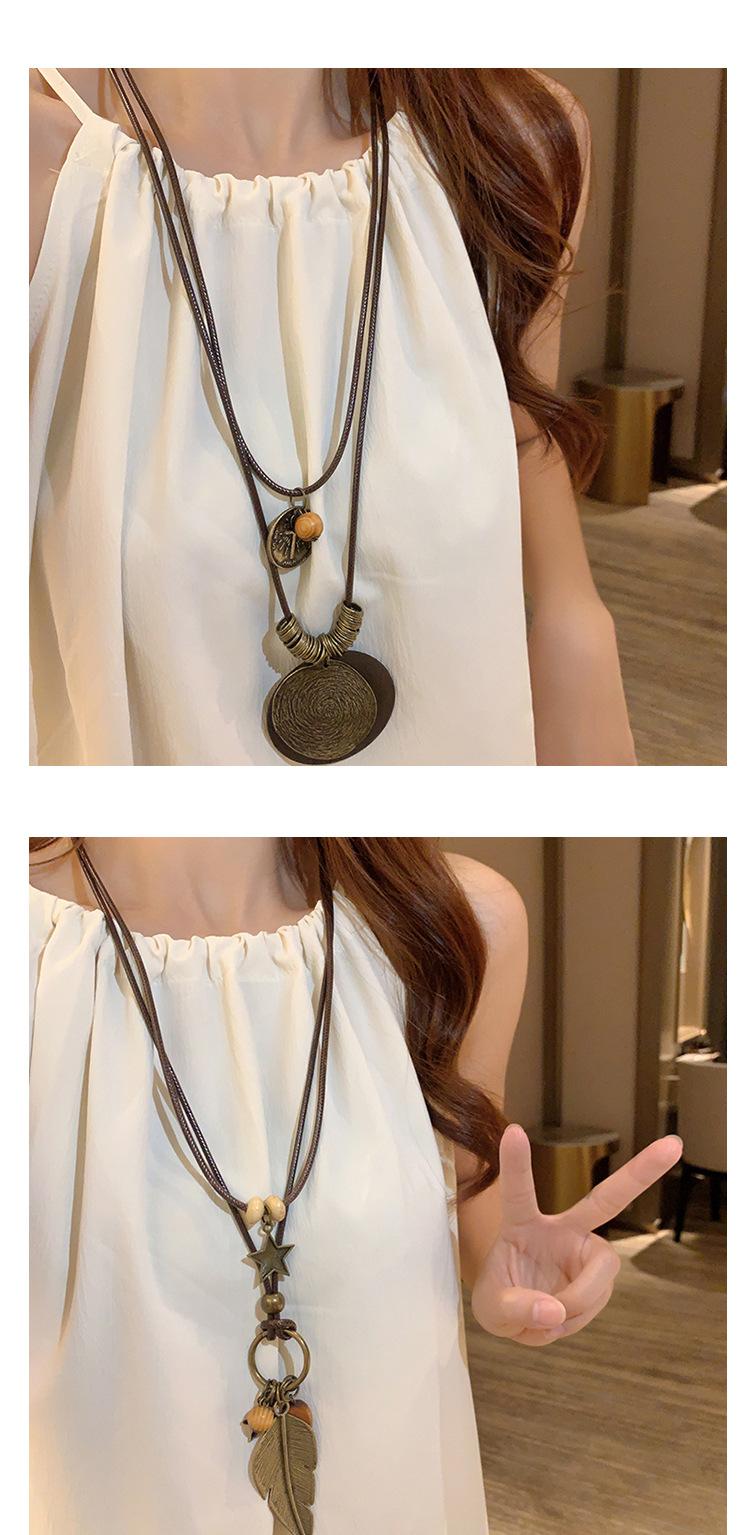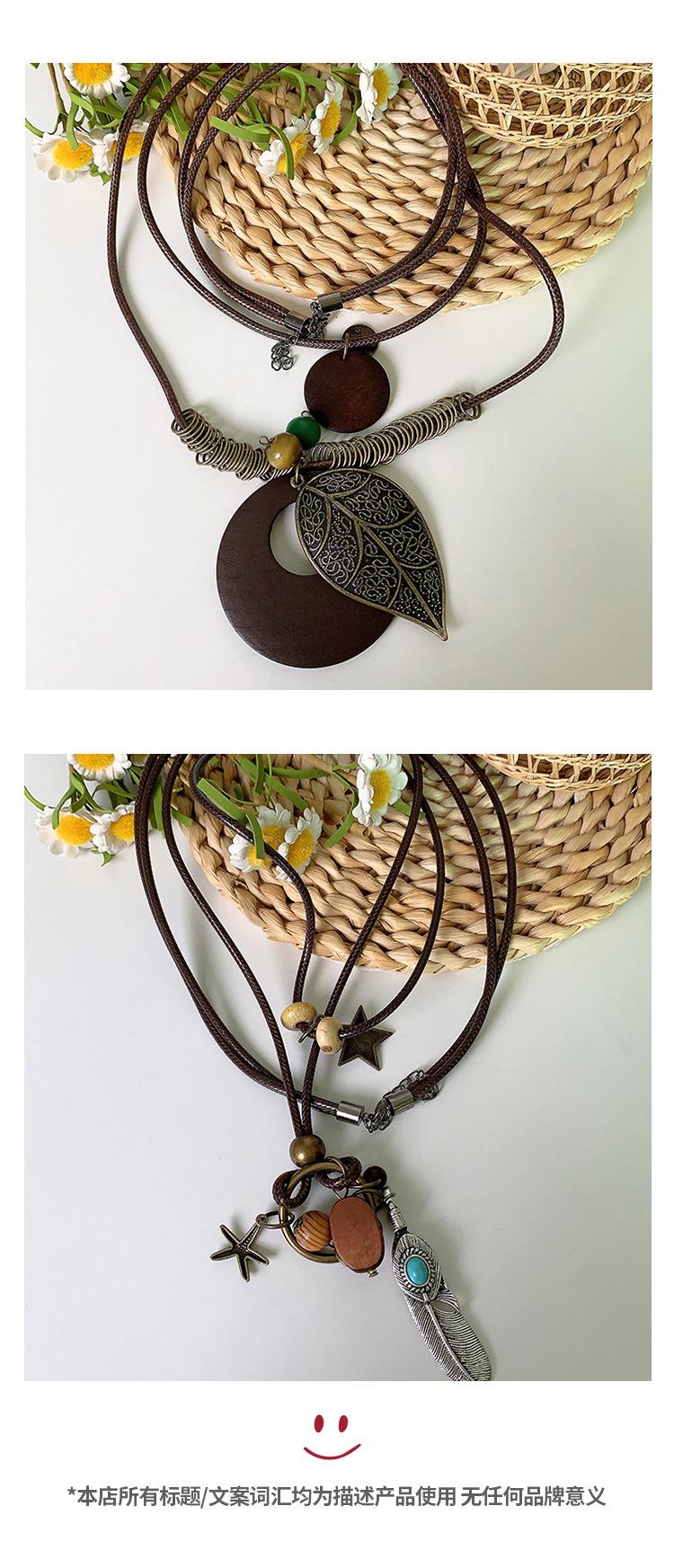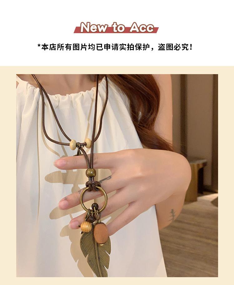 Novo colar longo de suéter estilo chinês pingente feminino de camada dupla estilo étnico retrô colar de miçangas nicho pingente de pena