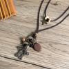 Double leather cord leaf necklace (a2050), Double leather cord disc necklace (a2059), Silver feather leather c...