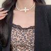 Colar com Pingente de Cruz Europeu e Americano Transfronteiriço Nicho Luxo Leve High-End Colar Clavicular com Contas Colar Temperamento Moda Tendência