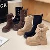 Botas Cáqui com Fivela para Mulheres 2024 Outono e Inverno Novo Dobrável de Duas Formas Botas de Cavaleiro de Sola Grossa Botas Slim Acima do Joelho