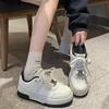 Sapatos Brancos de Plataforma Grossa de Verão 2025 para Mulheres Verão Pequenos Versáteis de Malha Respirável Estilo Coreano Sapatos Solteiros de Sola Grossa
