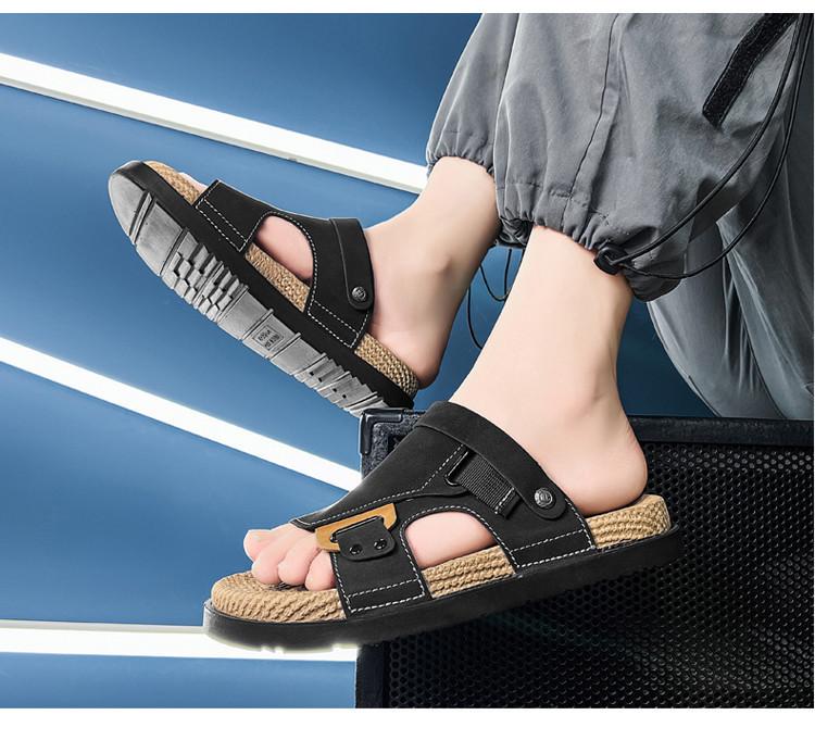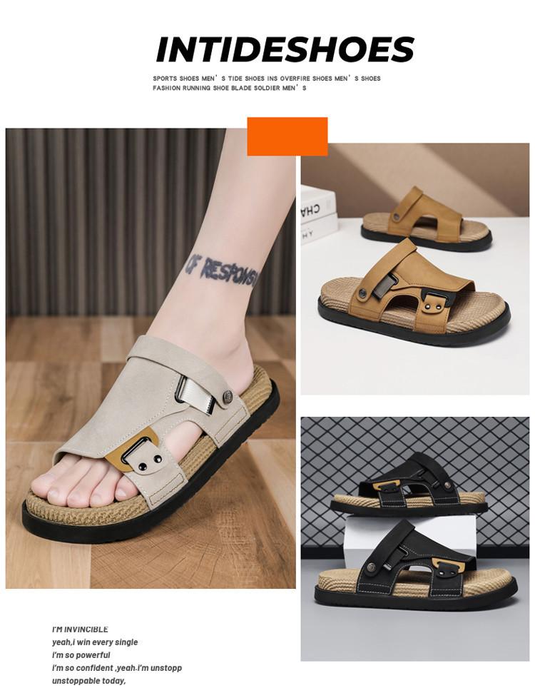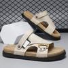 Sandálias Personalizadas para Verão Masculino para Uso Externo, Sandálias de Couro Fashion Antiderrapantes, Sandálias Masculinas para Dirigir, Chinelos para Trabalho e Lazer