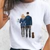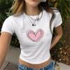 Novo outono feminino europeu e americano desejo impressão digital padrão moda casual manga curta T