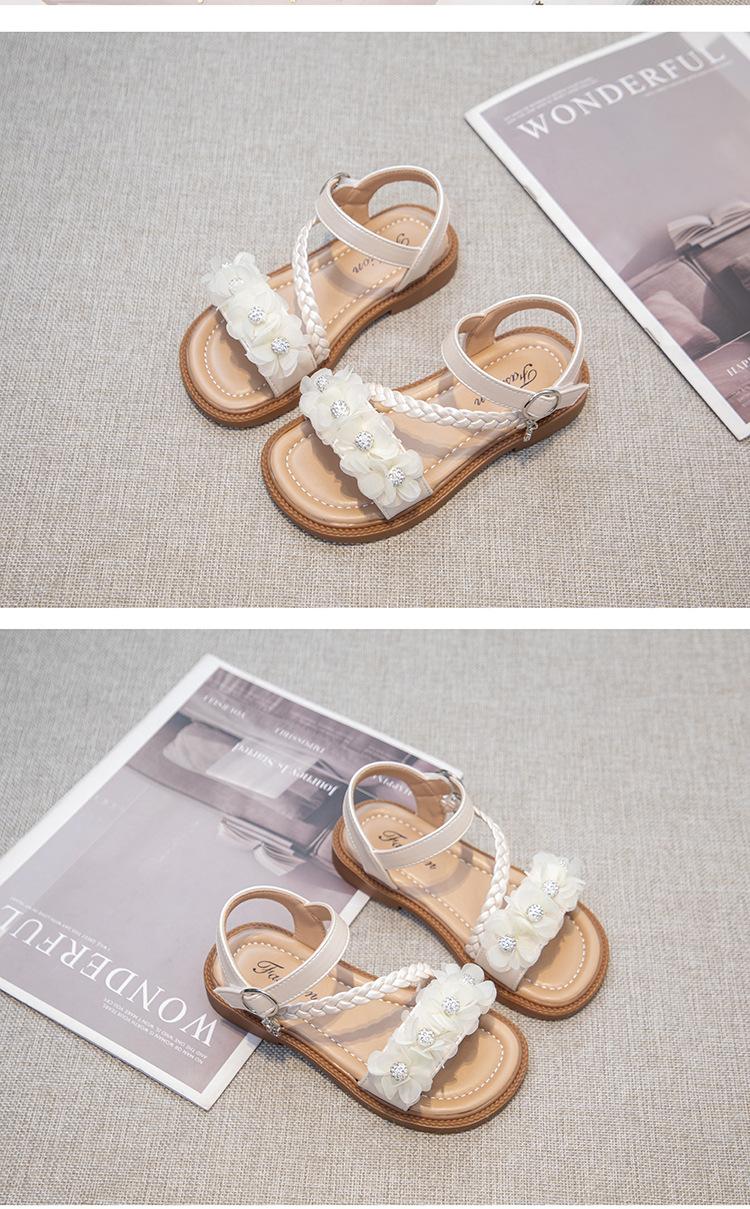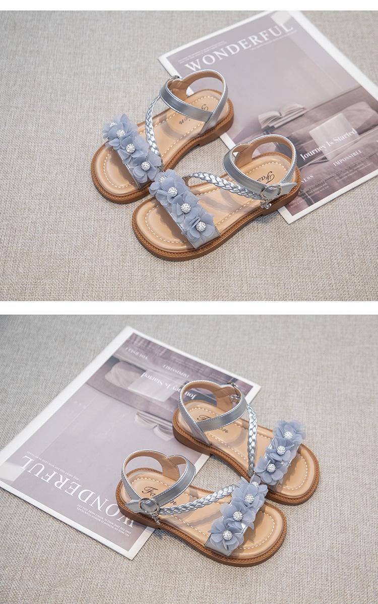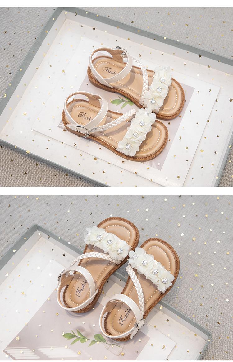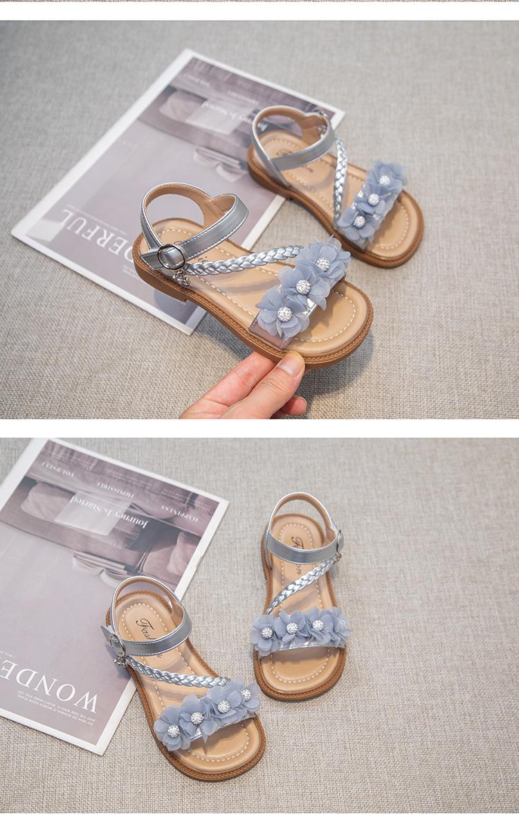 Sandálias para Meninas 2025 Verão Novo Estilo Coreano Flor Sapatos de Apresentação Mais Fáceis de Combinar Estilo Princesa Infantil Roupa Exterior Sandálias Leves