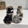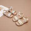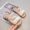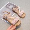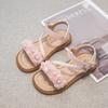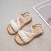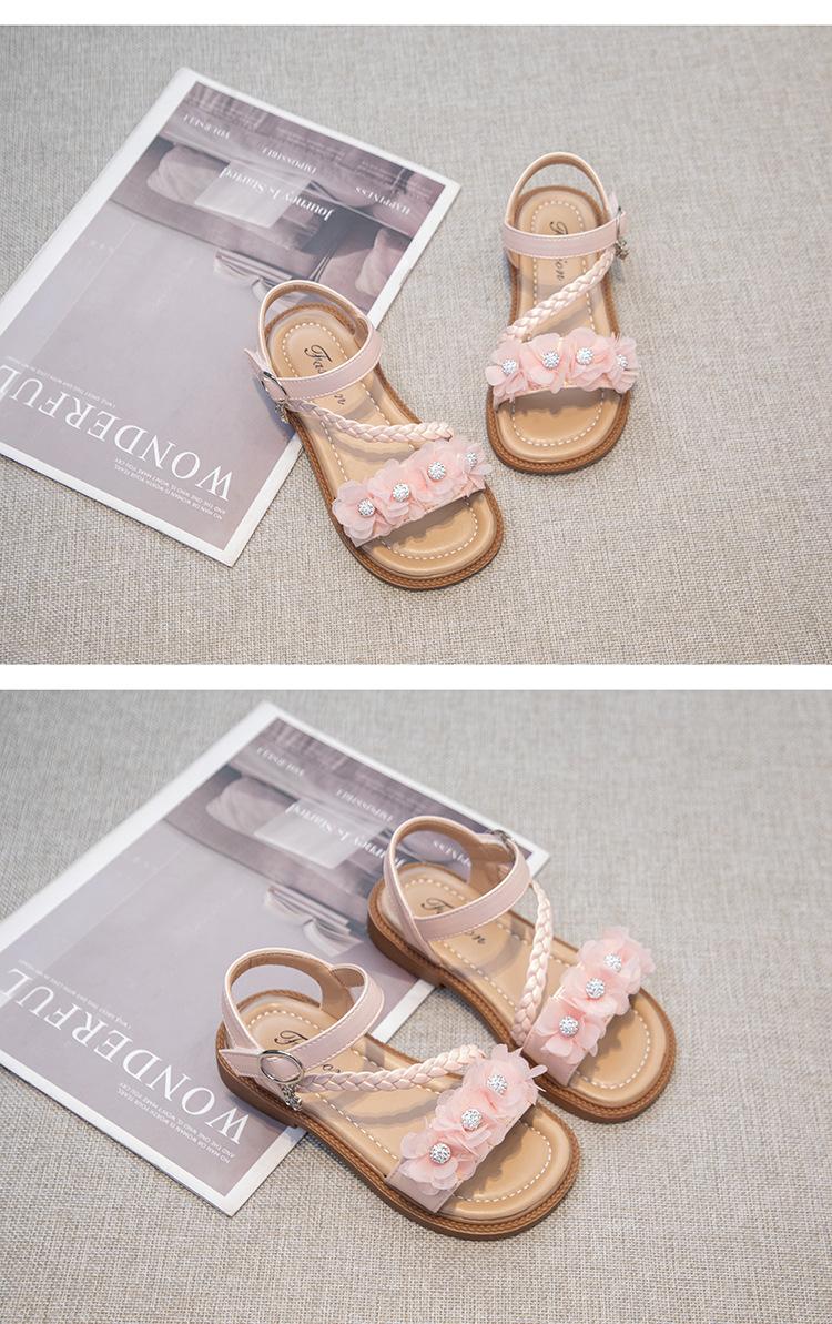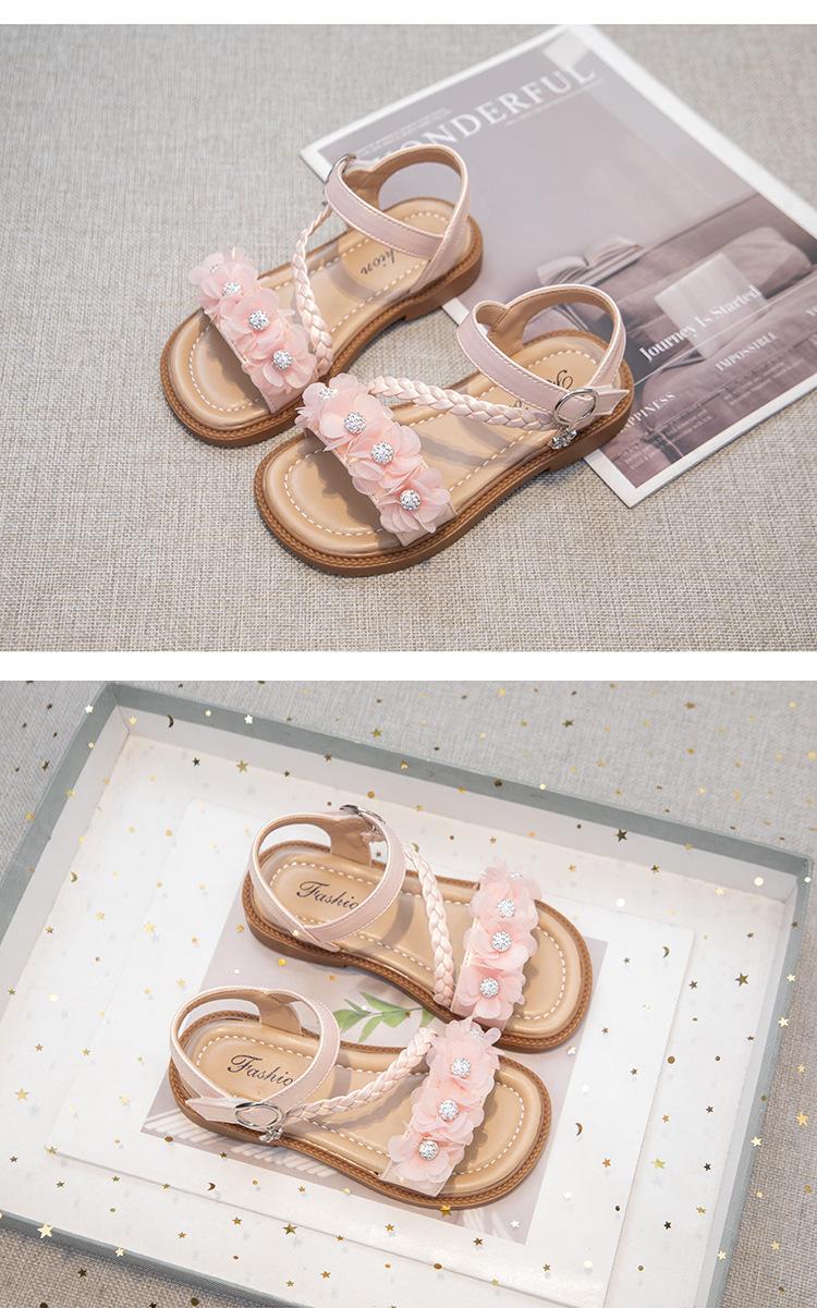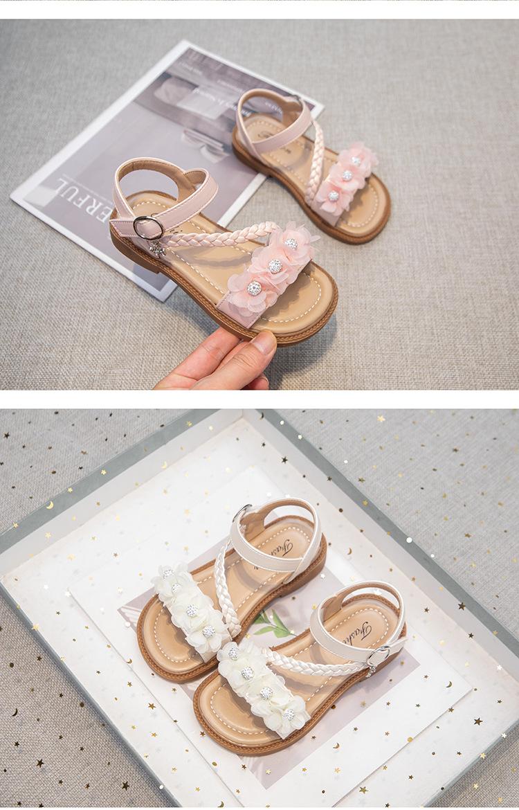 Sandálias para Meninas 2025 Verão Novo Estilo Coreano Flor Sapatos de Apresentação Mais Fáceis de Combinar Estilo Princesa Infantil Roupa Exterior Sandálias Leves