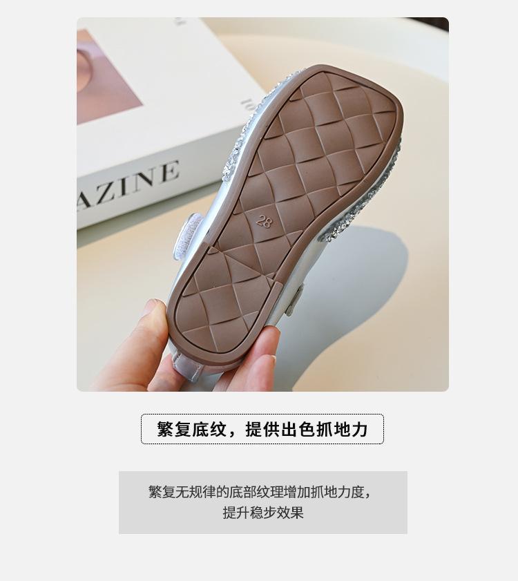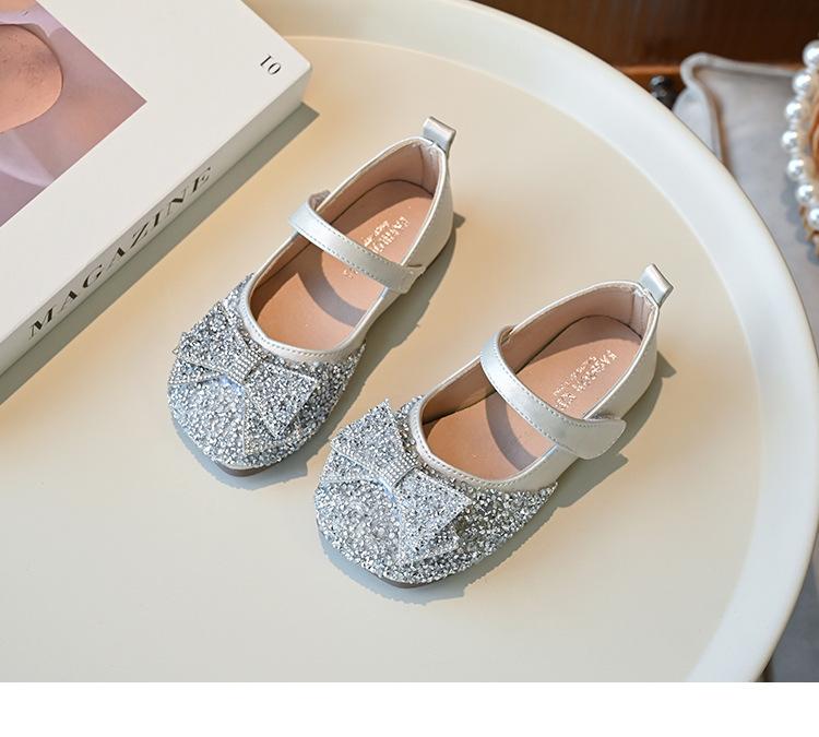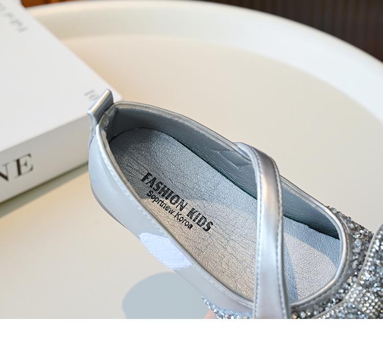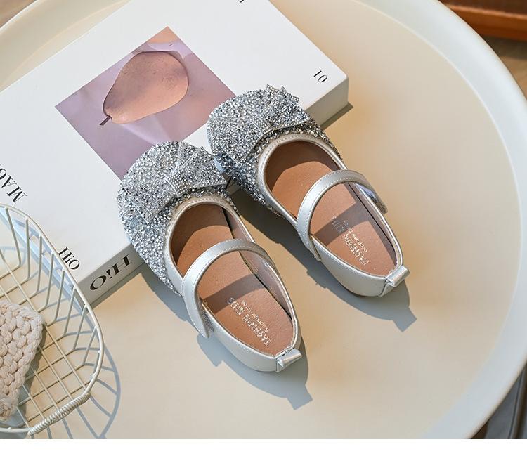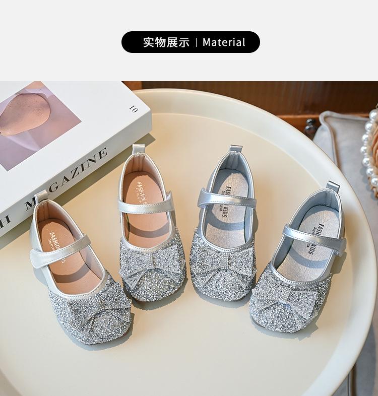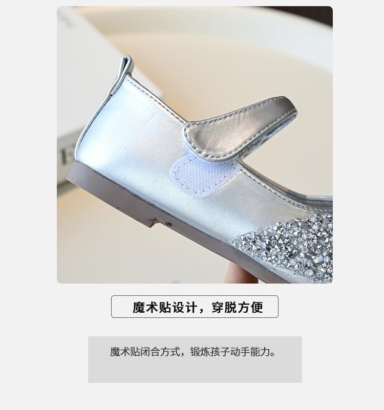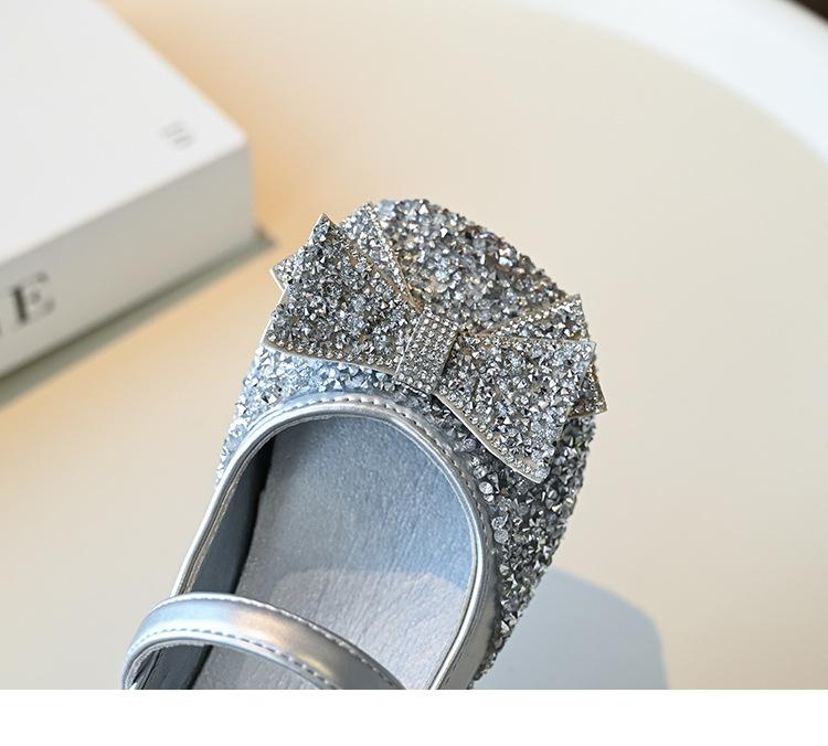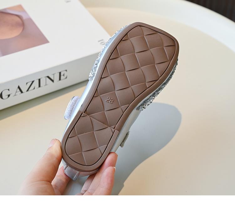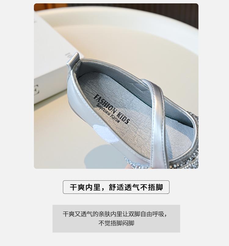 Sapatos de Princesa para Meninas 2025 Verão Novos Sapatos de Cristal Sapatos de Vestido para Meninas Sapatos de Strass Sola Macia Sapatos de Couro de Pequena Princesa