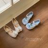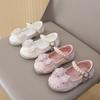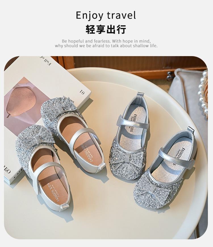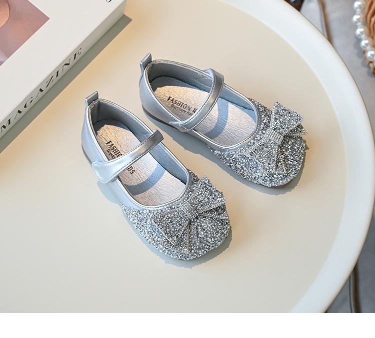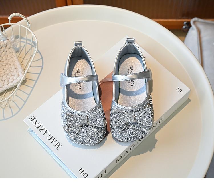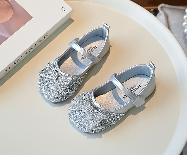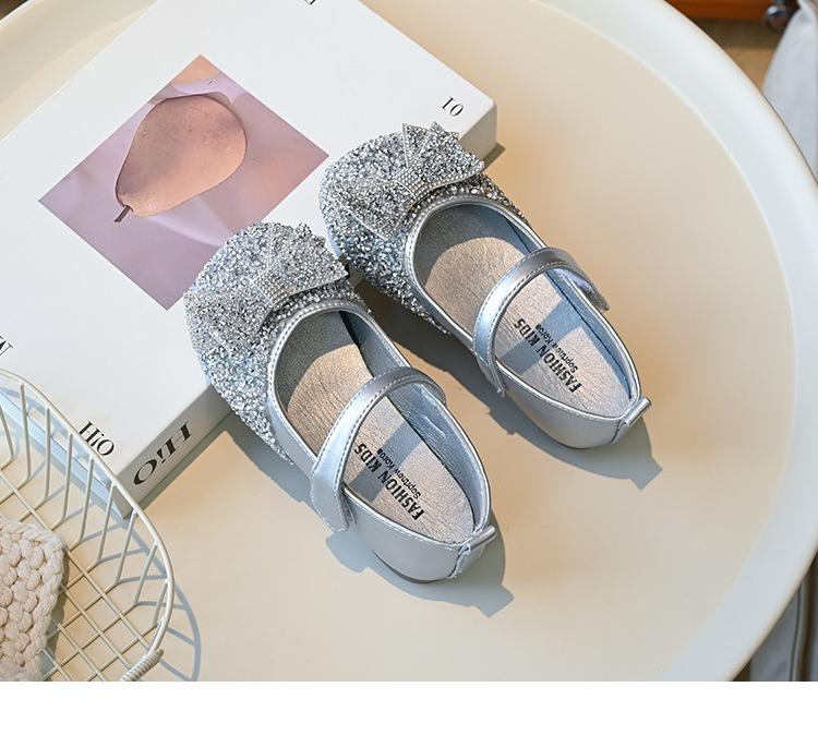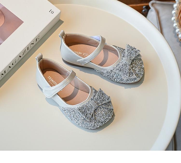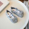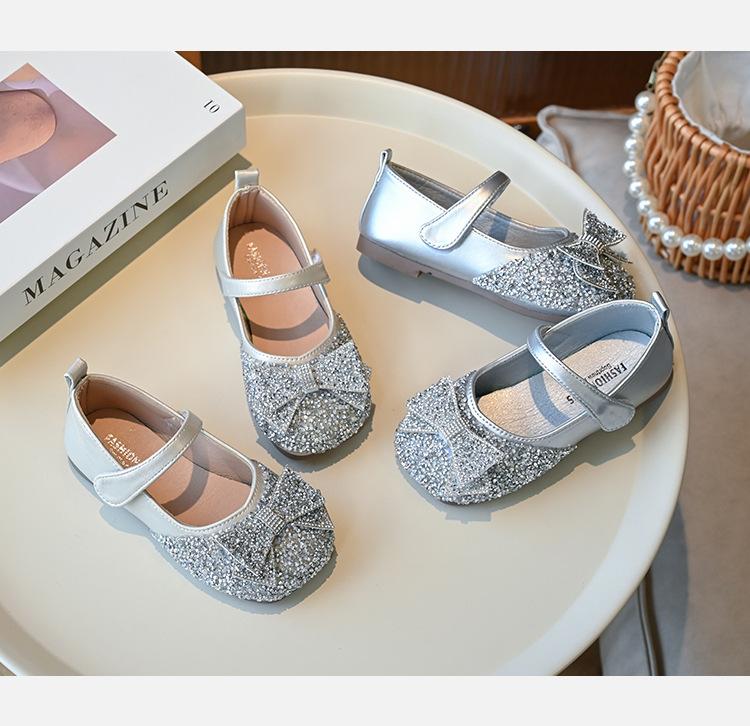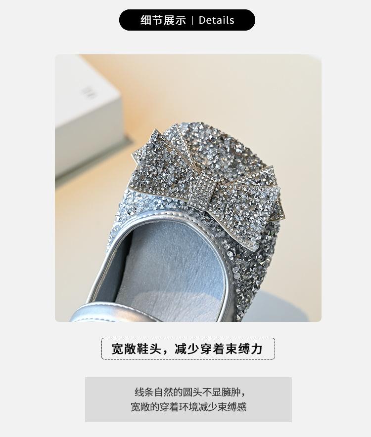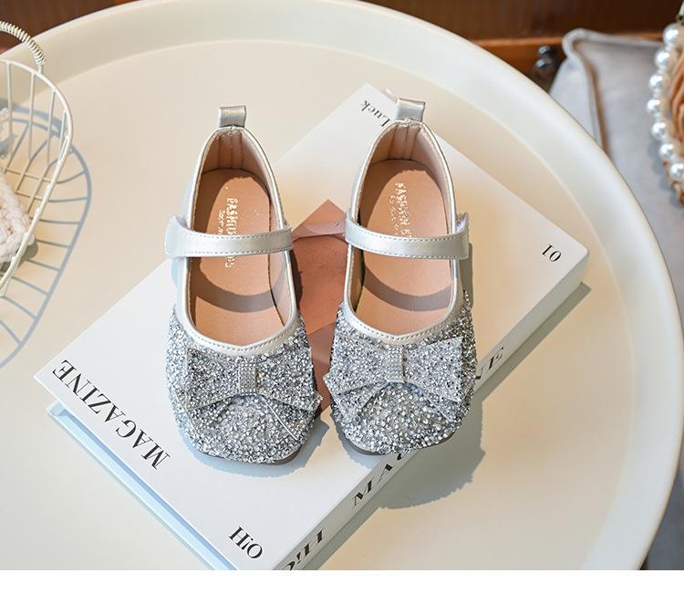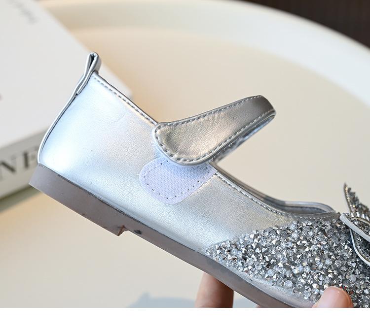 Sapatos de Princesa para Meninas 2025 Verão Novos Sapatos de Cristal Sapatos de Vestido para Meninas Sapatos de Strass Sola Macia Sapatos de Couro de Pequena Princesa