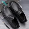 Dropshipping Transfronteiriço 2025 Novos Sapatos de Couro Sapatos Casuais de Bico Largo Masculinos Solado Macio Antiderrapante Couro Genuíno Moda Sapatos Masculinos
