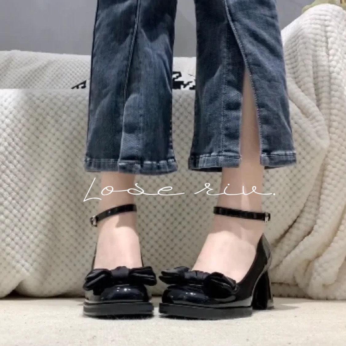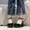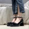 Sapatos Mary Jane Salto Grosso Feminino 2025 Verão Novo Estilo Fada Laço Salto Alto Couro Envernizado Sapatos Franceses Ins